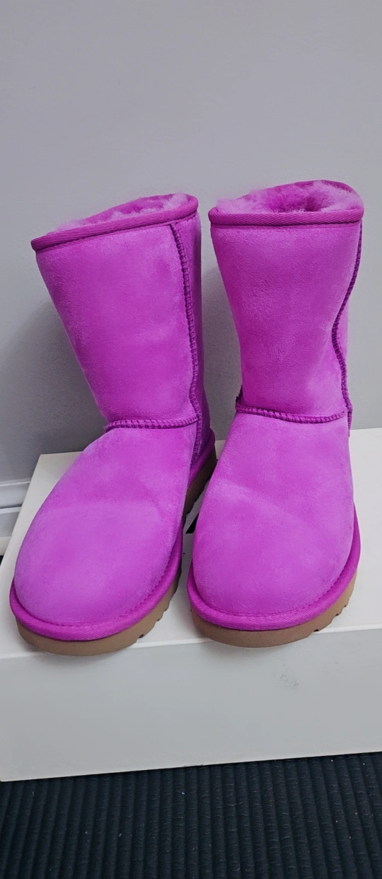 Selling a pair of UGG Classic Short boots in a vibrant purple colour! These cozy boots are perfect for keeping your feet warm and stylish during the colder months. They are in great condition and come with the original box