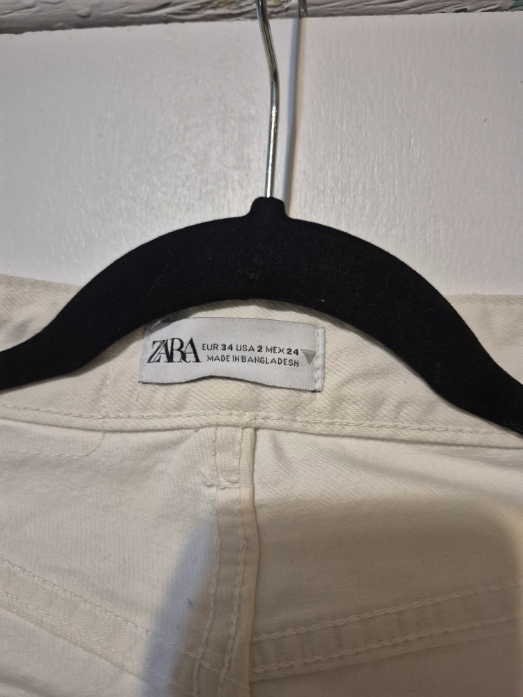 Selling a pair of Zara white jeans in size 2! They're in great condition and ready for a new home. The jeans are a stylish and versatile addition to any wardrobe, perfect for creating a variety of looks
