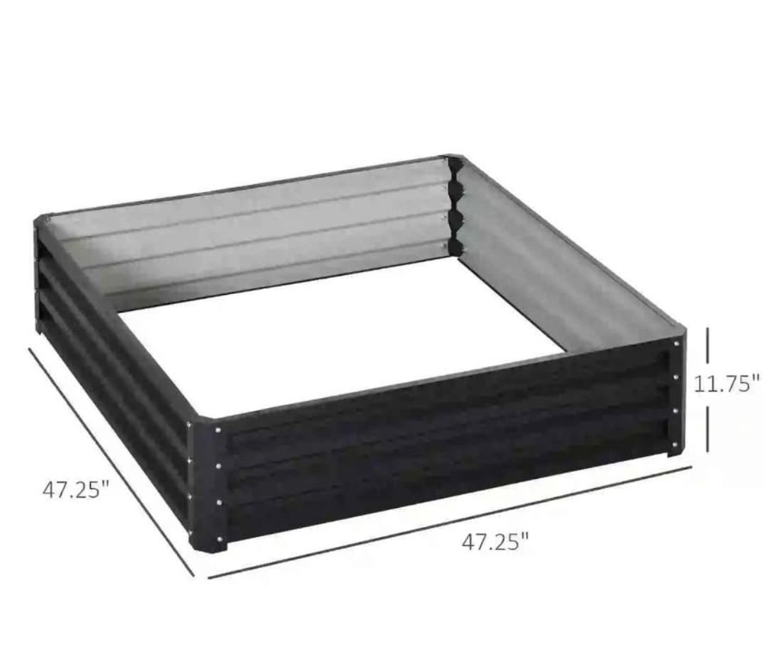 Transform your urban backyard into a lush oasis with the Outsunny raised garden bed. This compact planter fits seamlessly into limited spaces, allowing Alice and her family to cultivate fresh vegetables and herbs right at home. Crafted from powder-coated galvanized steel, it offers exceptional weather resistance and rust protection, ensuring longevity in urban environments. Easy to assemble and relocate, this garden bed adapts effortlessly to your evolving garden layout. Features: • The great and easiest way to grow your own garden at home • Suitable for planting vegetables, herbs, flowers in your yard • Galvanised steel material is powder coating for outdoor use • Open bottom design makes it great for long rooted plants • Comes with 4 panels and 4 connectors for easy assembly Specification: • Colour: Grey • Materials: Galvanised Steel • Overall Dimension: 47.2" L x 47.2" W x 11.8" H (120 x 120 x 30 cm) • Panel Dimension: 44.5" L x 11.8" W (113 x 30 cm) • Connector Dimension: 12" L x 3.5" W (30.5 x 9 cm) • Item Label: 845-040V01GY Package Includes: • 1 x Garden Bed Set • 1 x Manual