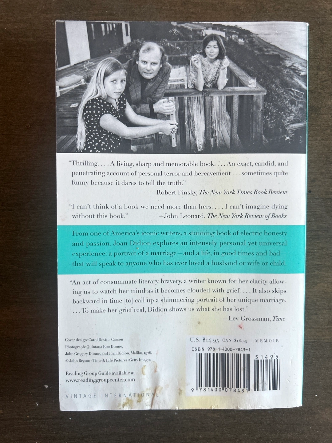 Selling a copy of "The Year of Magical Thinking" by Joan Didion! It's a memoir and a National Book Award winner. The cover price is $14.95 CAN. ๐ฅ Pickup downtown Bloor East