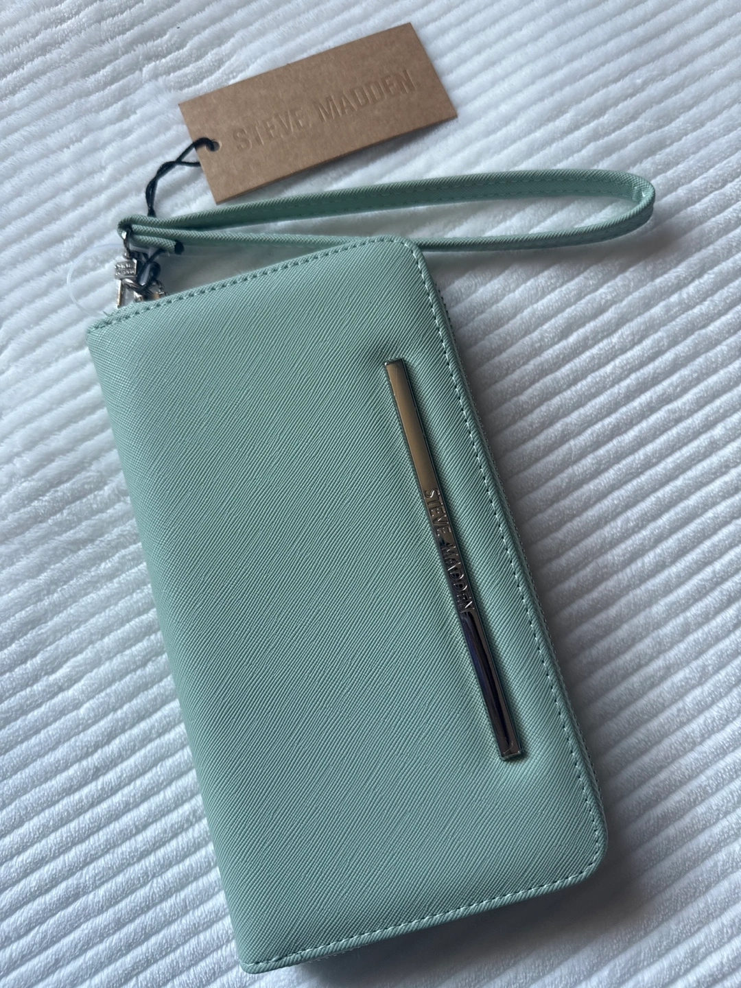 I'm selling a mint-coloured Steve Madden Bzippy Zip Around Wallet Wristlet! It's brand new with tags. (Even in the second image the hardware protector film has been shown) Retails for $92.96. If you’re seeing this its still available feel free to chat, grab this unique and useful colored wallet while you can!