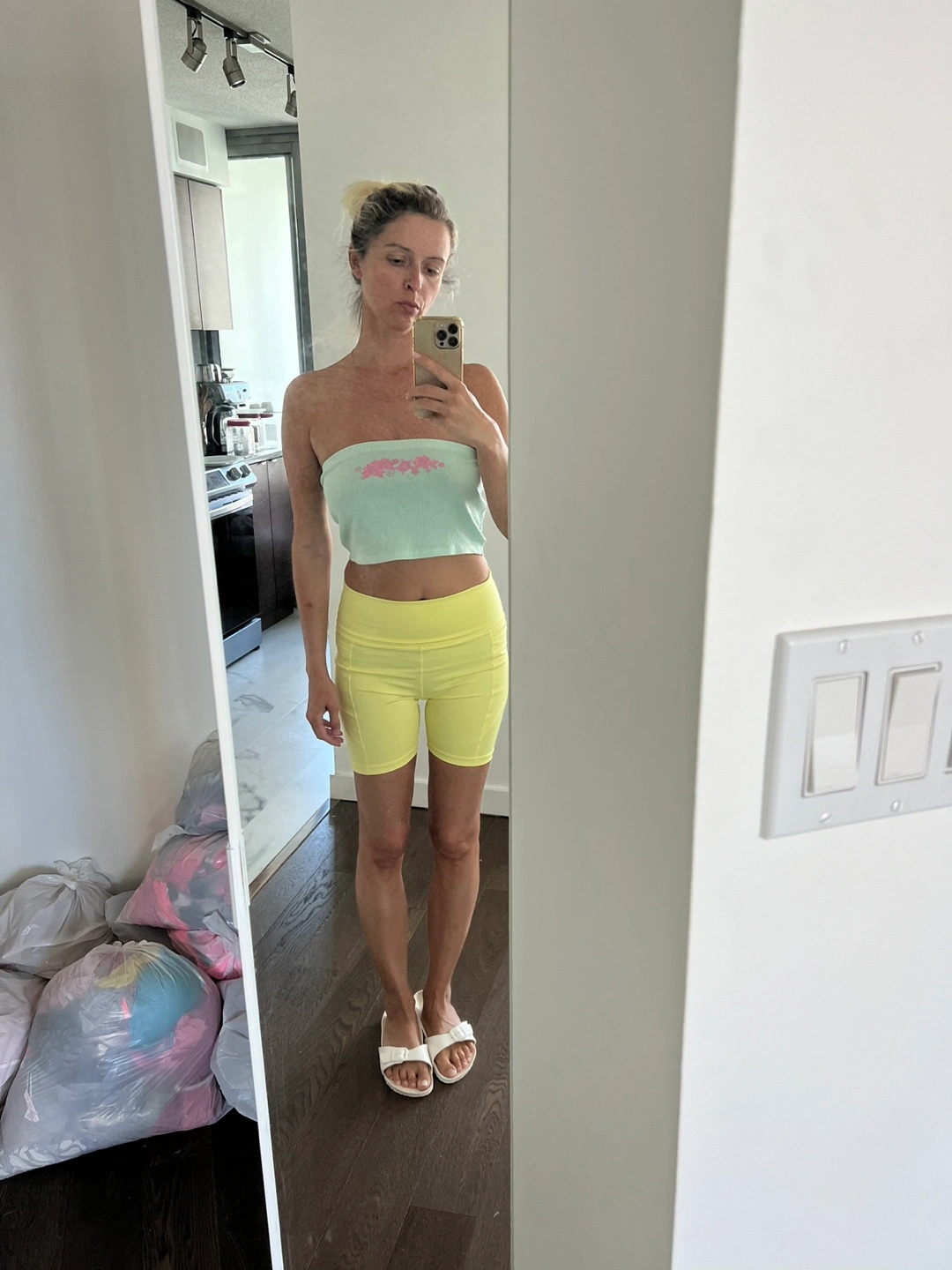 Size S comfortable stretchy worn only few times. Have pockets on the sides.