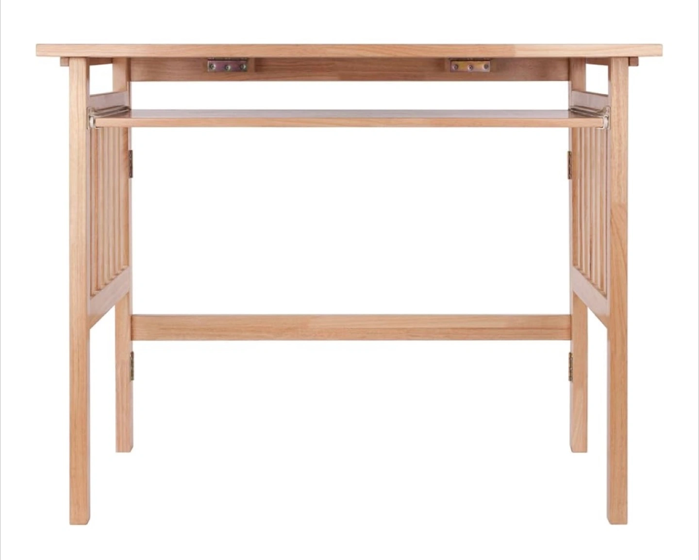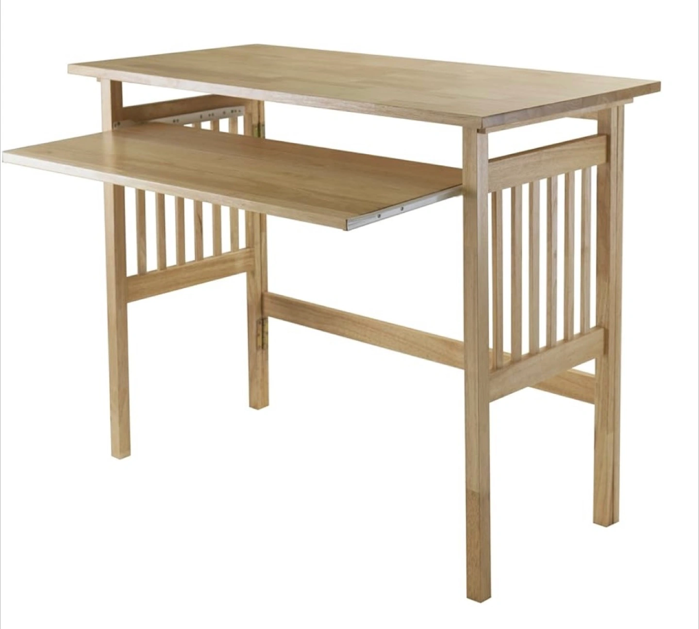 Selling a wood computer desk in great condition! It features a convenient pullout keyboard tray, perfect for saving space and keeping your workspace tidy. The desk is sturdy and has a classic design that would fit well in any home office or study. It's ready for a new home! If you’d like to store it, it folds into 42inches wide, 33.5 inches tall and 4 inches deep.