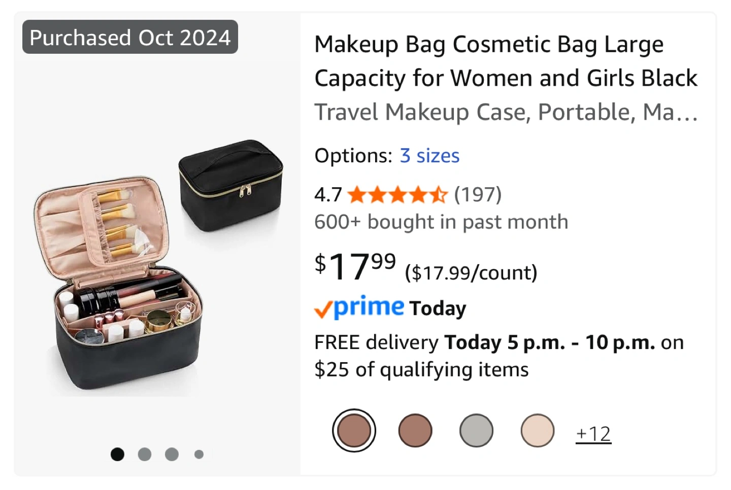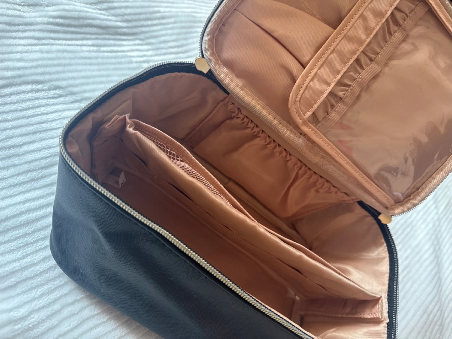 Selling a large capacity black makeup bag! It's perfect for travel or organizing your cosmetics at home. It has multiple compartments inside to keep everything tidy. The bag is brand new,I never really needed to put this to use this although i really love it. It’s still brand new and I bought it for $17.99 +tax. If you’re seeing this it’s still available, feel free to chat while it’s still here. First come first served.