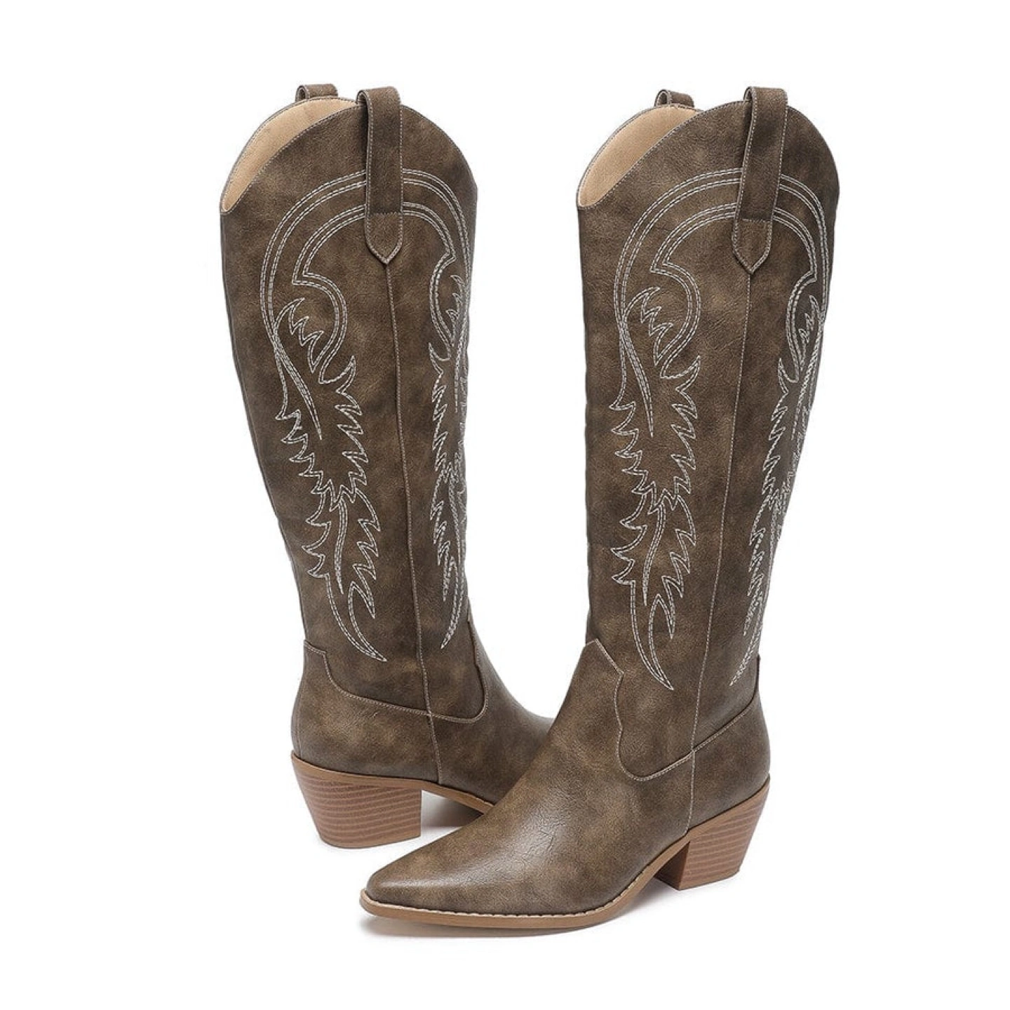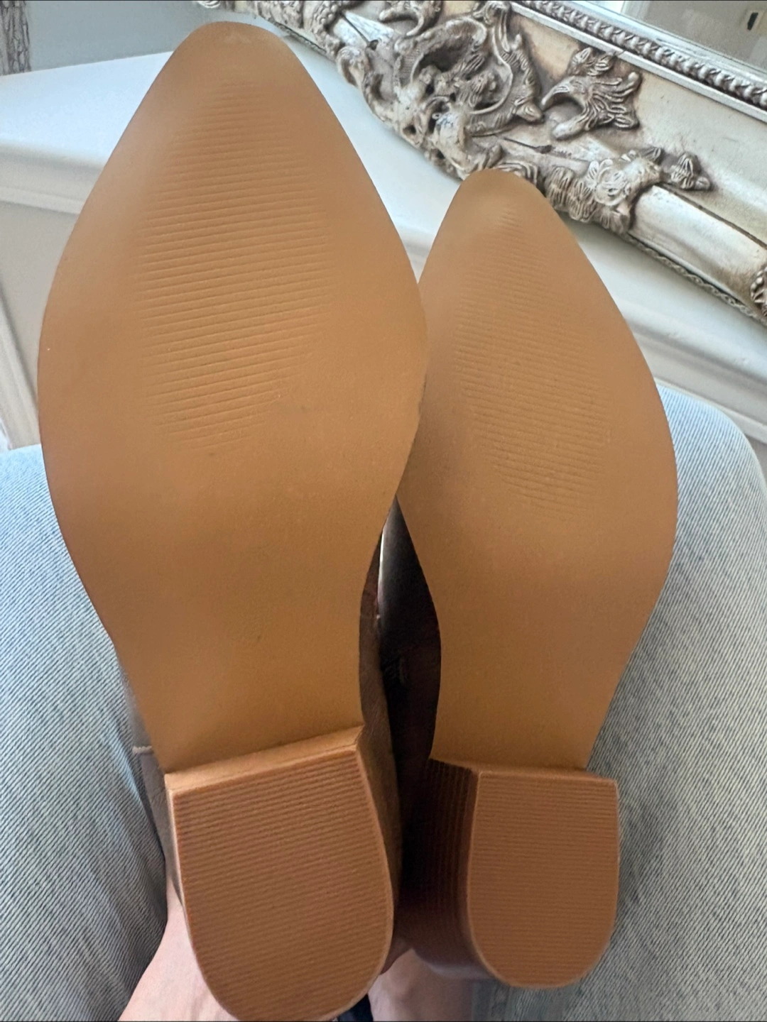 Selling a pair of brown cowboy boots with decorative white stitching. They have a classic western style and would be a great addition to your wardrobe! The boots are brand new and ready for a new home. Size 8.5 or 39 Brown Faux Leather Pull on with side zipper Comfortable Meet up & cash only pls Meet up is in Nobleton