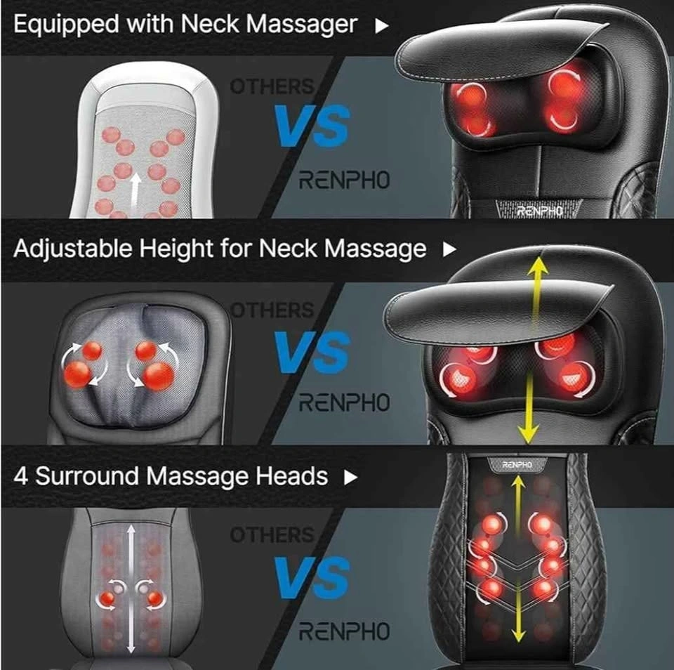 Brand new RENPHO Neck & Back Massager with Heat for Chair, Full Back Shiatsu Rolling Massage Chair Pad with Height Adjustable, Back Massager Cushion for Neck Shoulders Waist, Gifts for Women & Men
