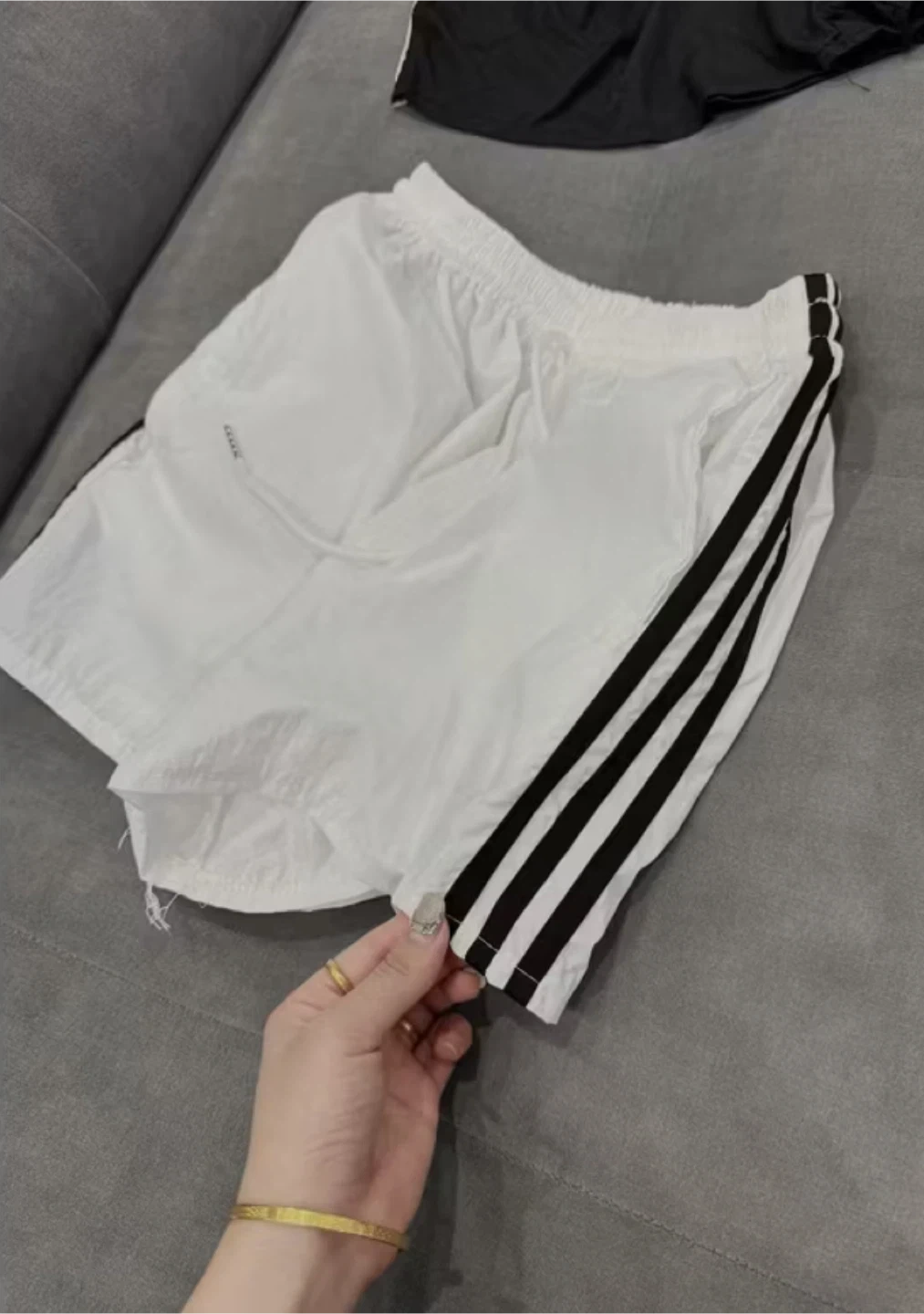 Selling a pair of Adidas white shorts with black stripes. They're in great condition and perfect for casual wear or sports. Size is not indicated, but they appear to be a standard size. The material feels lightweight and comfortable, ideal for warm weather!