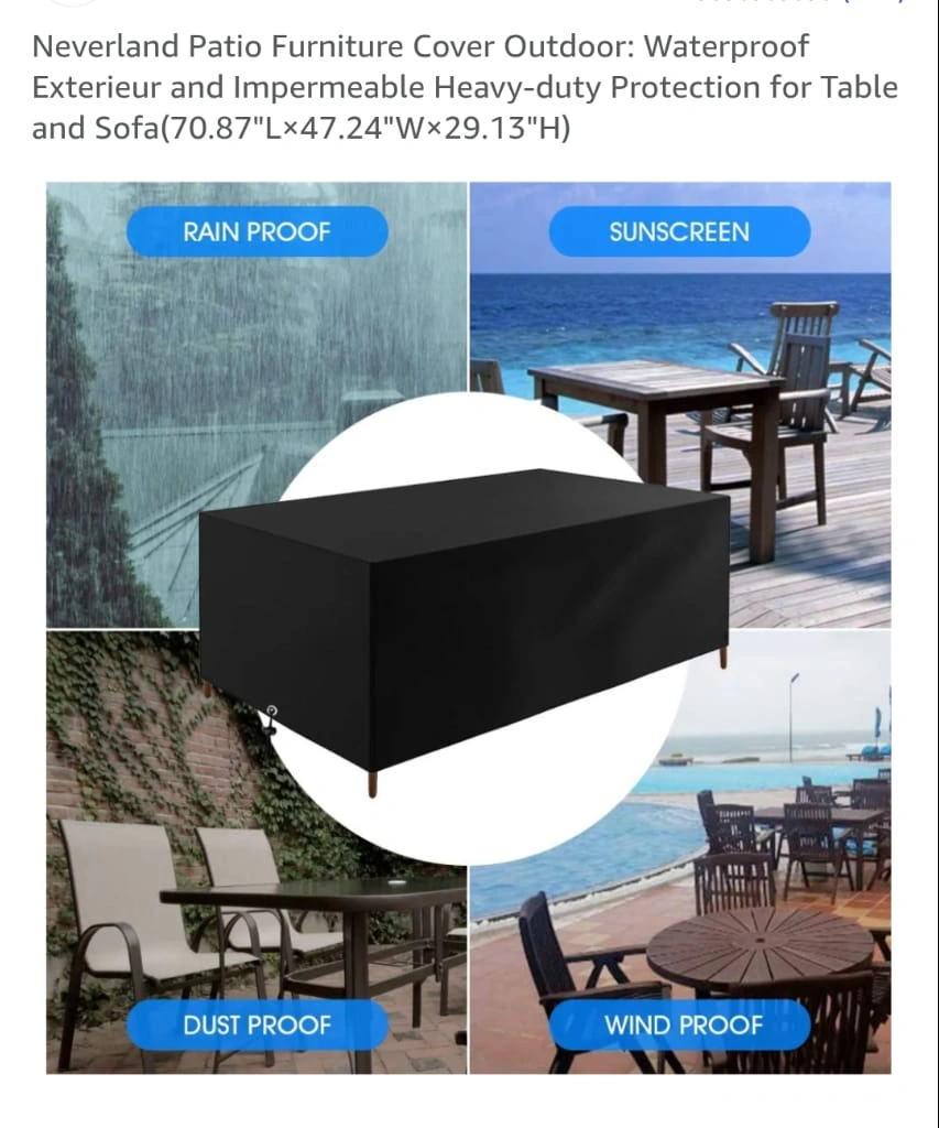 Keep your outdoor furniture protected with this Neverland patio furniture cover! It's waterproof, dustproof, and provides sunscreen protection. Dimensions: - Length: 70.87 inches - Width: 47.24 inches - Height: 29.13 inches