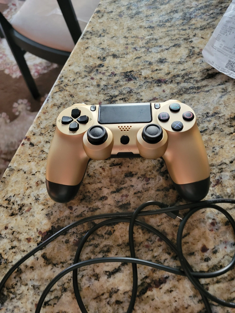 Selling a wireless gold PlayStation 4 DualShock 4 controller. It's in great shape and ready for a new home! Comes with the charging cable. Compatible with Sony Playstation 4 PS4 console & PC & Android OS.Not made by Sony.Charge Efficiently: This wireless controller can easily be recharged, even when on standby, or with any standard charger with a micro-USB port.