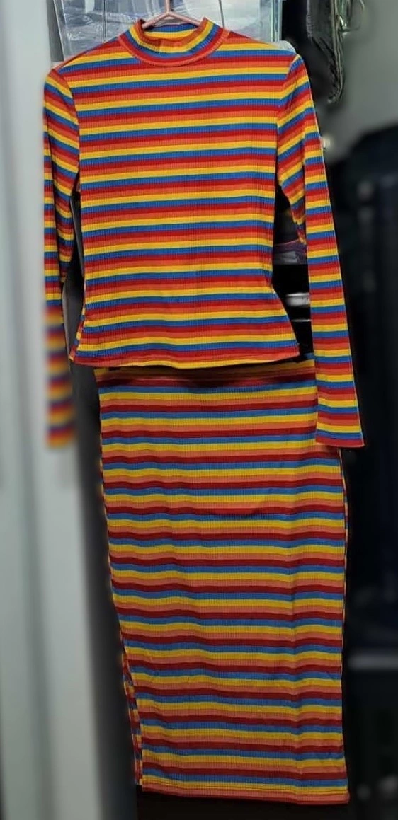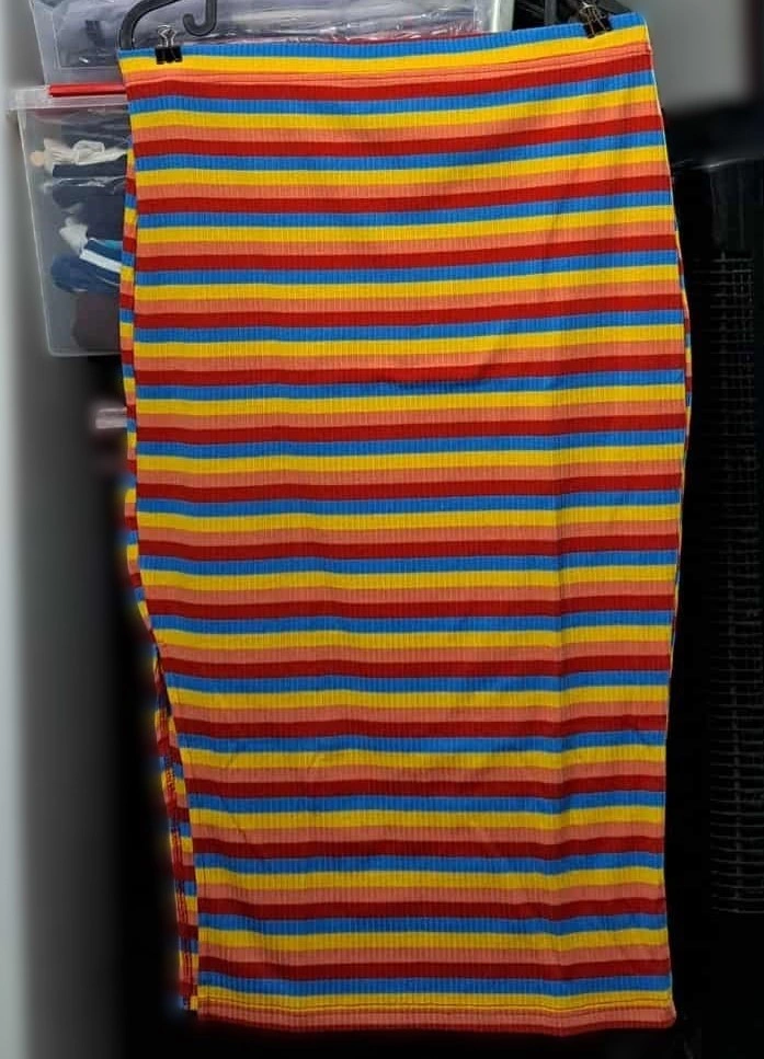 This slim fit, easy-to-wear Striped Stand Collar Top and Waist Midi Side Slit Skirt set is both beautiful and stylish, with both a casual and elegant look, but also comfortable for everyday wear. A fashion that is fashionable for both women and girls throughout the year. Made of 97% polyester and 3% elastane. Medium Stretch. Size 8 to 10
