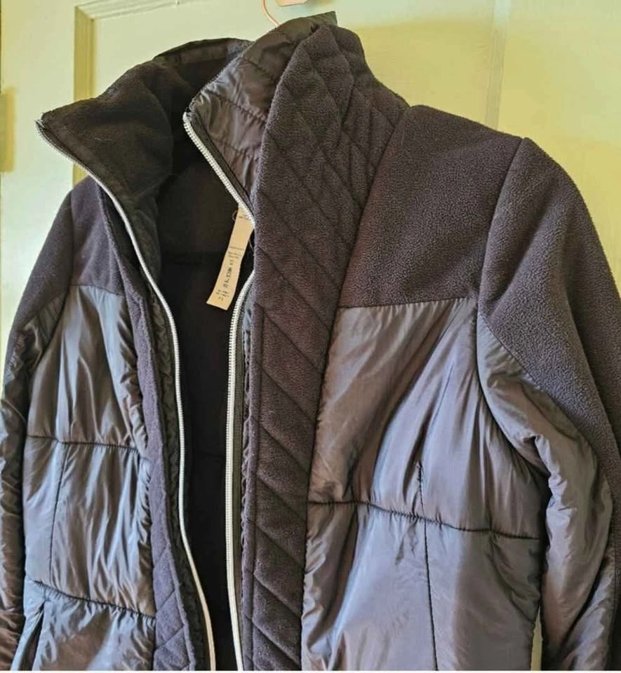 St. Moritz insulated puffer jacket from Lululemon, in a size 8. Jacket is in excellent used condition. Pit to pit measures about 19.5", sleeve length measures about 20", and shoulder to bottom hem measures about 22.5". Why we made this We designed this jacket to take us to and from our daily practice, up (and down) the mountain and even for a few spins around the rink. The wind- and water-resistant Cire shell helps keep us dry while the thick fleece interior ensures we're snug as a polar bear - even on ice. Key features soft and fuzzy fleece feels great and helps keep you toasty in chilly temps the Cire fabric exterior is wind- and water-resistant for those blustery days front zipper pockets makes it easy to stow your keys and cards securely double-layer collar makes it extra tough for that pesky wind to get in Tech specs designed for: to-and-from fabric(s): Cire, Fleece properties: wind- and water-resistant fit: body-skimming length: mid-hip