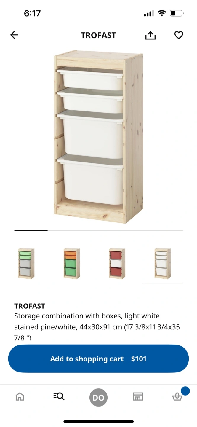 Selling an IKEA Trofast storage combination with boxes in light white stained pine/white. It measures 44x30x91 cm (17 3/8x11 3/4x35 7/8 "). Great for kids' rooms or play areas!