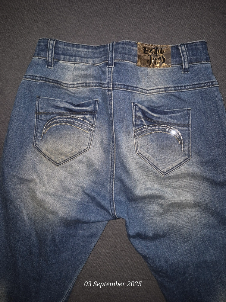 Cute DESIGUAL denim stretch jeans with floral embroidery. They're in great condition and ready for a new home!