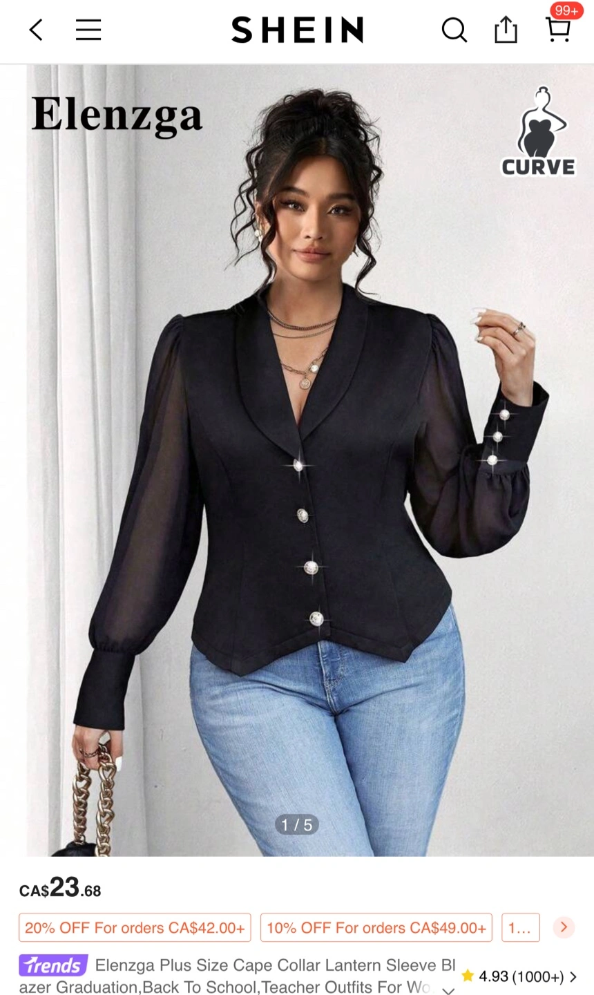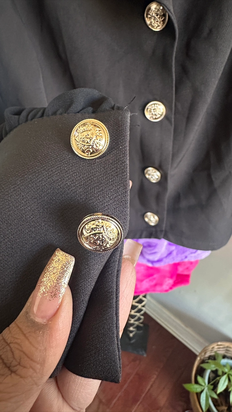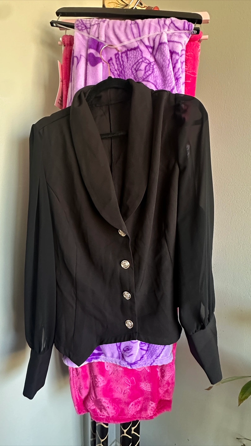 Selling a SHEIN Elenzga blouse in black. It features lantern sleeves and button detailing. Originally bought for $23.68!