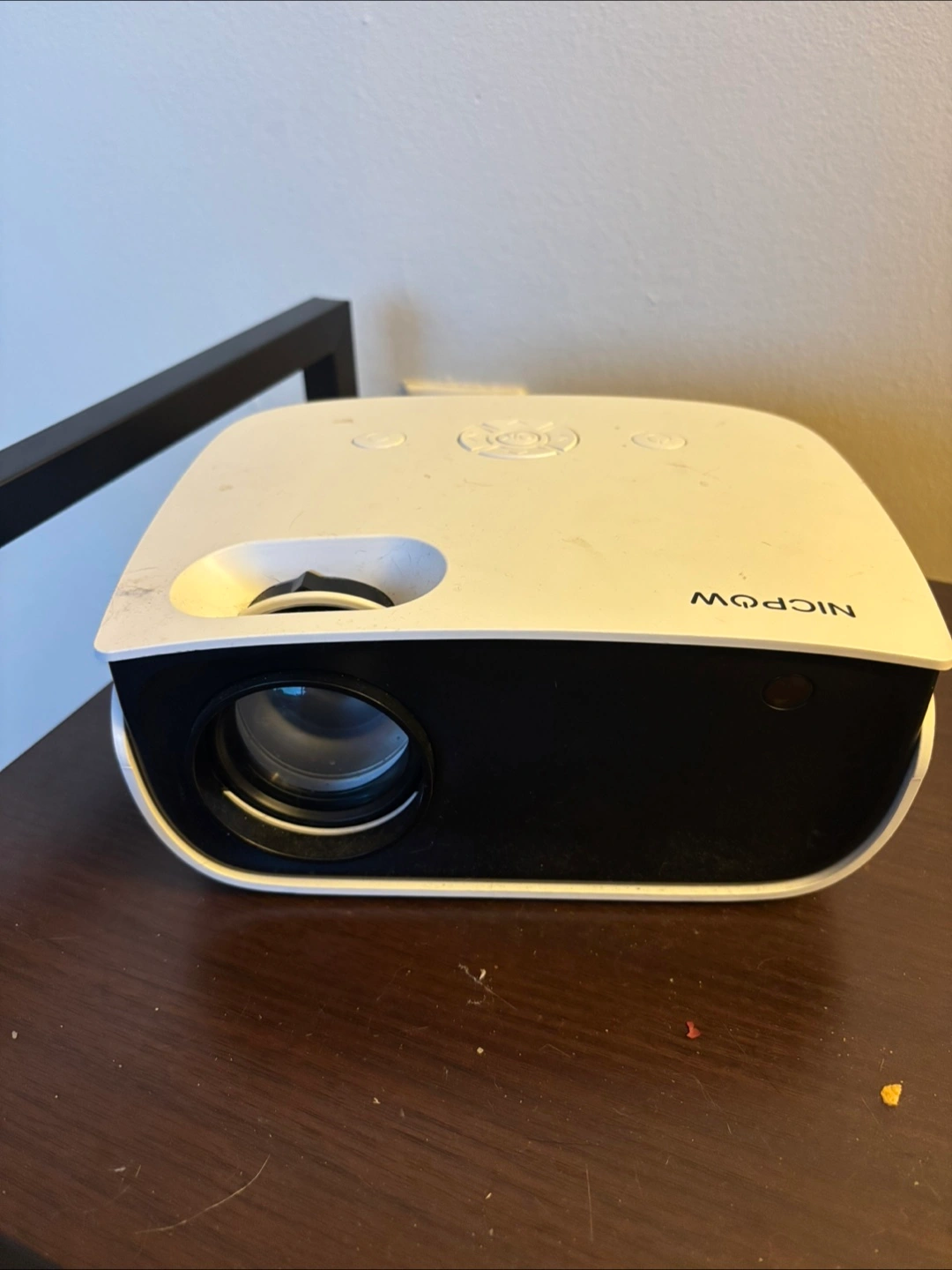 Selling a NICPOW projector in great condition. It's white with a black front. Great for home theatre or presentations! comes with 2 remotes, HDMI to USBC to connect it directly to iphone or laptop, also comes with all power cords and also comes with attachment to drill into wall used twice - it works perfectly (i’m just so blind i never use it and just watch directly from my laptop