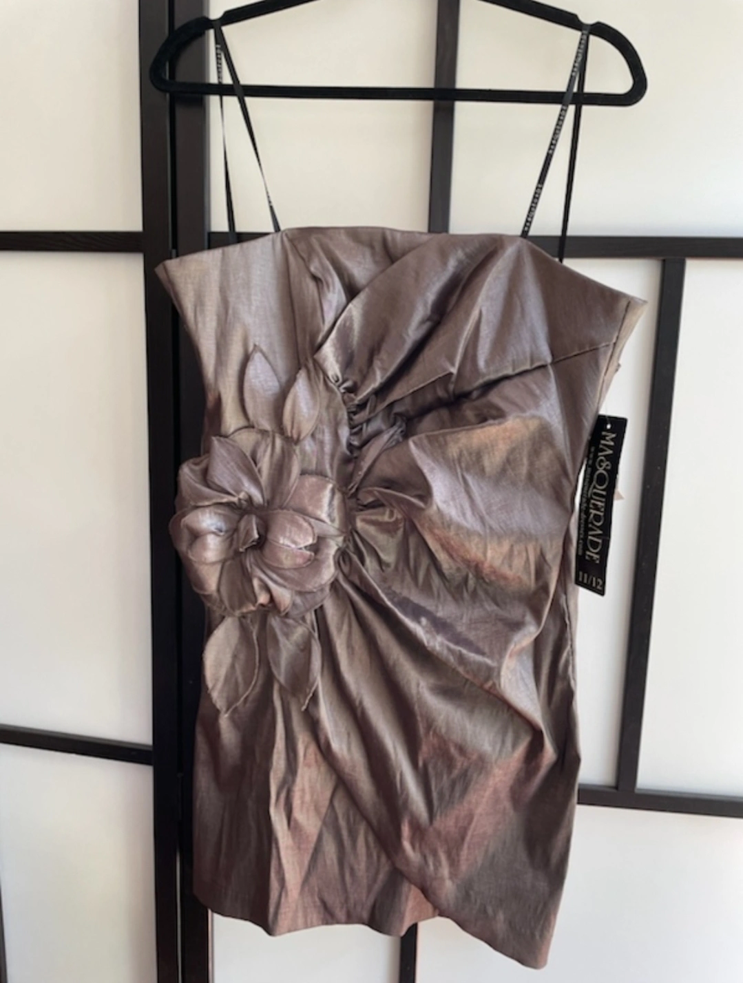 SELLING: Formal cocktail strapless dress Beautiful formal dress unworn with tags still on. It definitely deserves better than to live neglected in my closet. She deserves to be seen -- with you! đâ¨ď¸ $30 â˘â˘â˘â˘â˘ The details: Metallic Taupe coloured strapless cocktail dress US ladies size 11 Never worn, tags still on Pickup in Junction (West End Toronto) near Dupont / Lansdowne *Cash only* (Note: Cover photo edited to remove busy background so you can see dress more clearly, but no edits to dress. 2nd photo is the original taken at home)