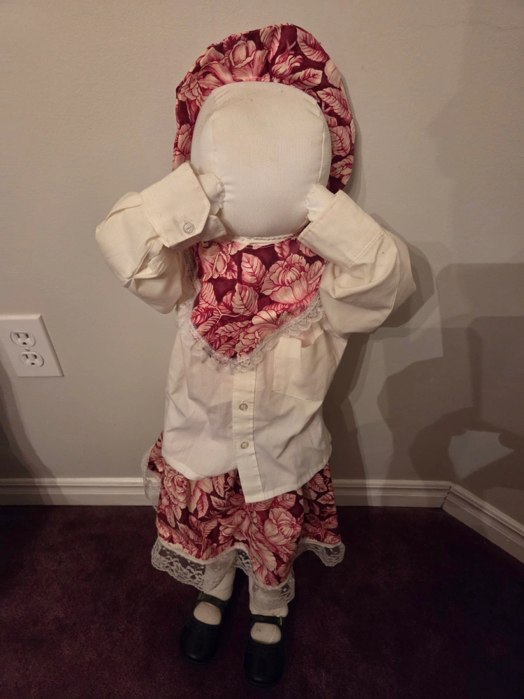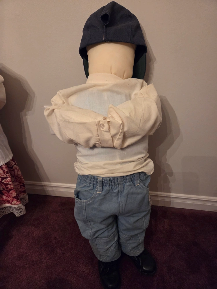 these timeout dolls are hand crafted with actual clothing and shoes 36 inches in height (girl) boy is 34 inches in height gently used asking $110 obo