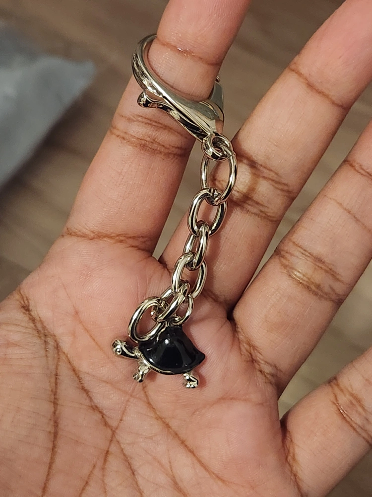 Cute turtle keychain with a black shell and silver-tone metal. Perfect for adding a touch of charm to your keys or bag!
