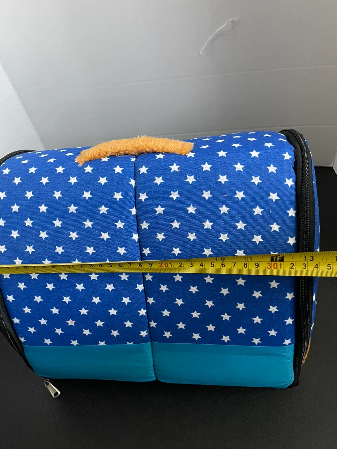 This is a cute pet carrier with a blue and white star pattern. It has a soft, plush lining and a comfortable handle for carrying your furry friend. Brand new. Pick up in south Ajax.