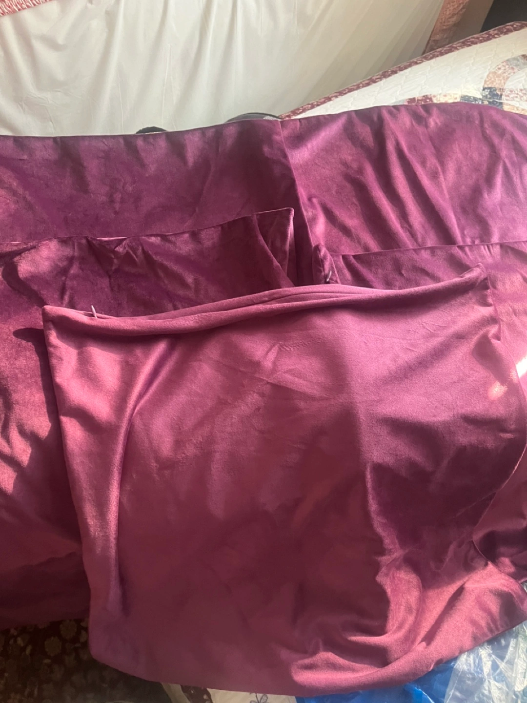 Selling a set of purple velvet pillow covers. They're in great condition and would add a touch of luxury to any room! The set includes multiple pillow covers, as shown in the photos.