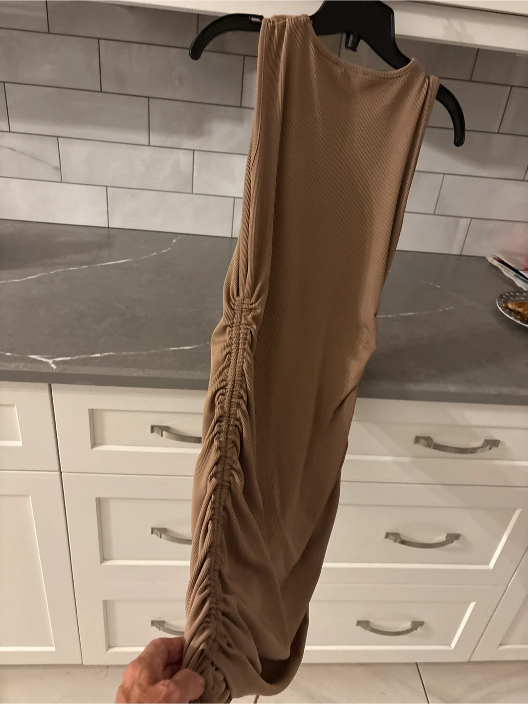 Selling a cute brown sleeveless dress from SHEIN! It features ruched detailing on the sides, adding a stylish touch. The dress is in great condition and perfect for a casual day out or dressed up for an evening event. ..pick up on Chandos Drive in Chicopee area of south Kitchener