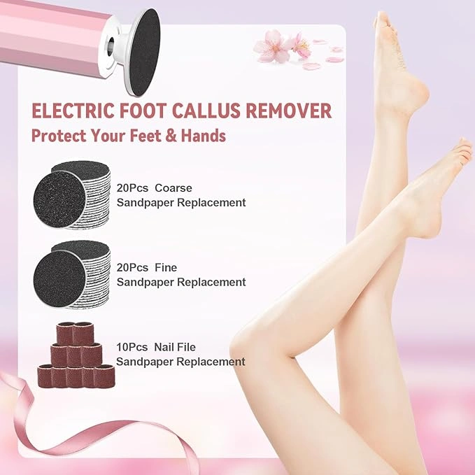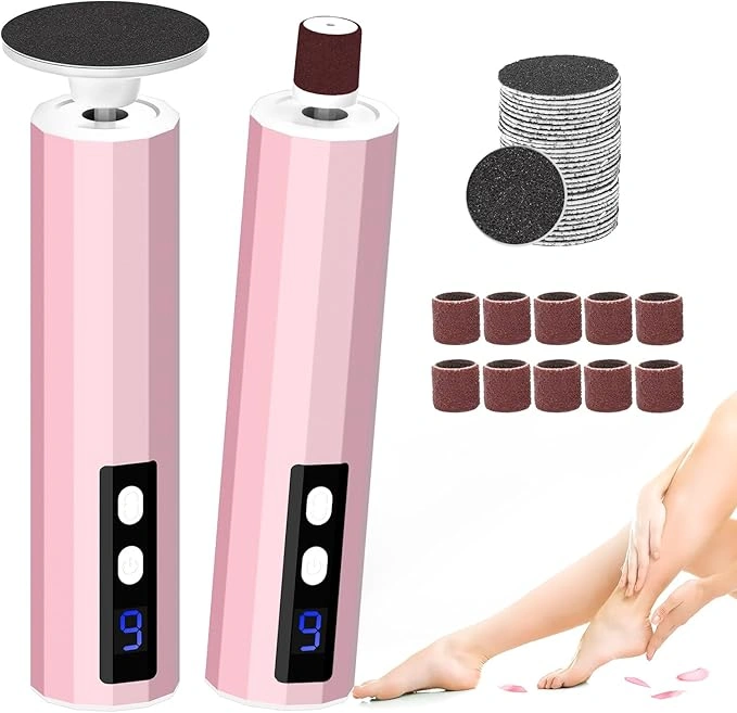 This 2 in 1 electric file grinder is perfect for both hand and foot care! It comes with: - 20pcs Coarse Sandpaper Replacement - 20pcs Fine Sandpaper Replacement - 10pcs Nail File Sandpaper Replacement It features 2 rotating directions (forward & reverse), a visual display area with 9 gears option, and a Type-C charging port. Made with aluminum alloy material for durability