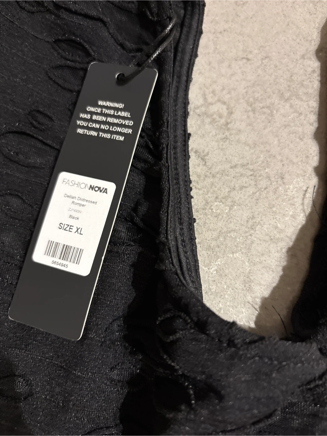 Selling a NEW Fashion Nova Deliah Distressed Romper in black, size L-XL with tags…this fun dress up outfit is ready for a new home..**pick up on Chandos Drive in Chicopee area of south Kitchener N2A4H8