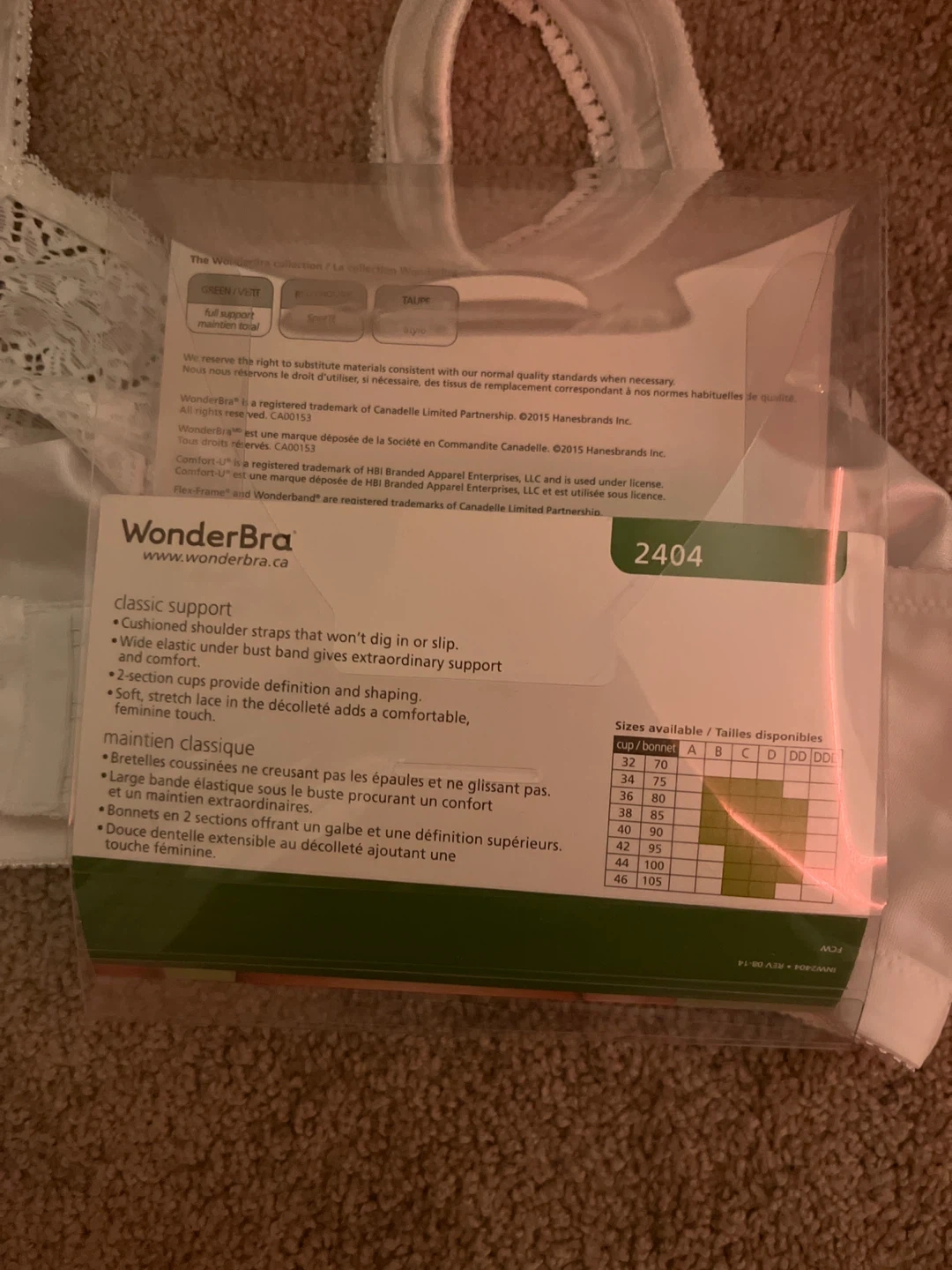 Selling a WonderBra Classic Support Wire Free Bra in size 42DD and colour white. It features: - Cushioned shoulder straps that won't dig in or slip - Wide elastic under bust band gives extraordinary support and comfort - 2-section cups provide definition and shaping - Soft, stretch lace adds a comfortable, feminine touch