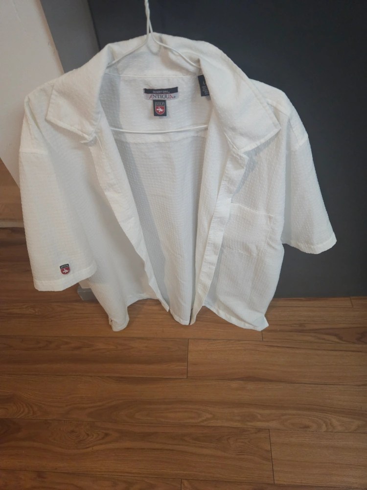 25Selling a gently used Antigua Desert Dry short sleeve shirt in size L! It's a crisp white colour and would be great for the summer
