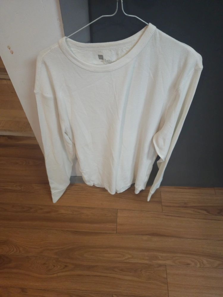 25Selling a gently used GAP long sleeve shirt in white. It's a comfortable and versatile piece for layering or wearing on its own. Perfect for casual wear!