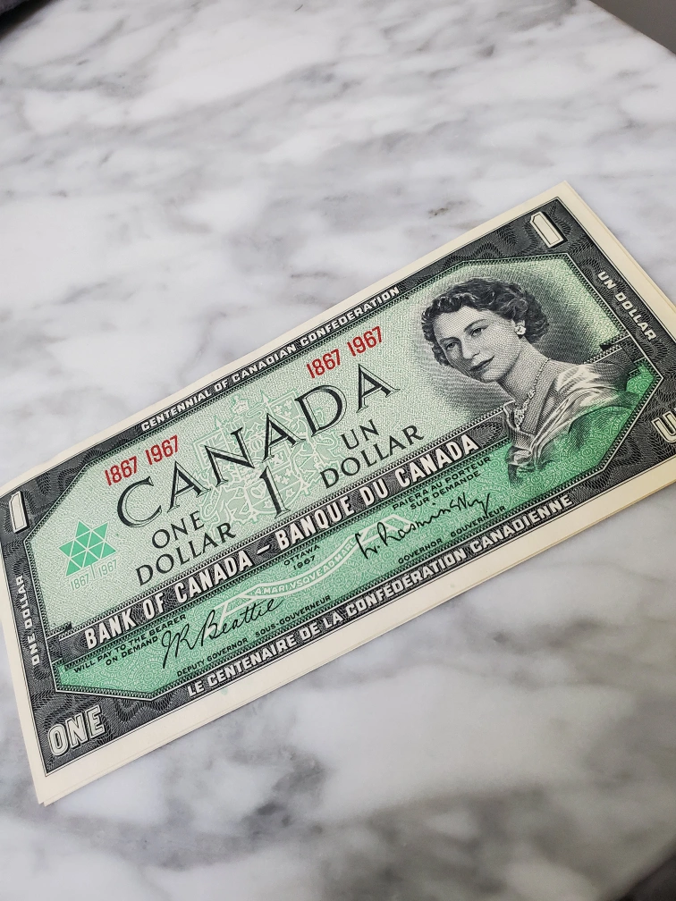 Selling a 1967 Canadian one dollar bill, commemorating the Centennial of Canadian Confederation. It's in great condition for its age!