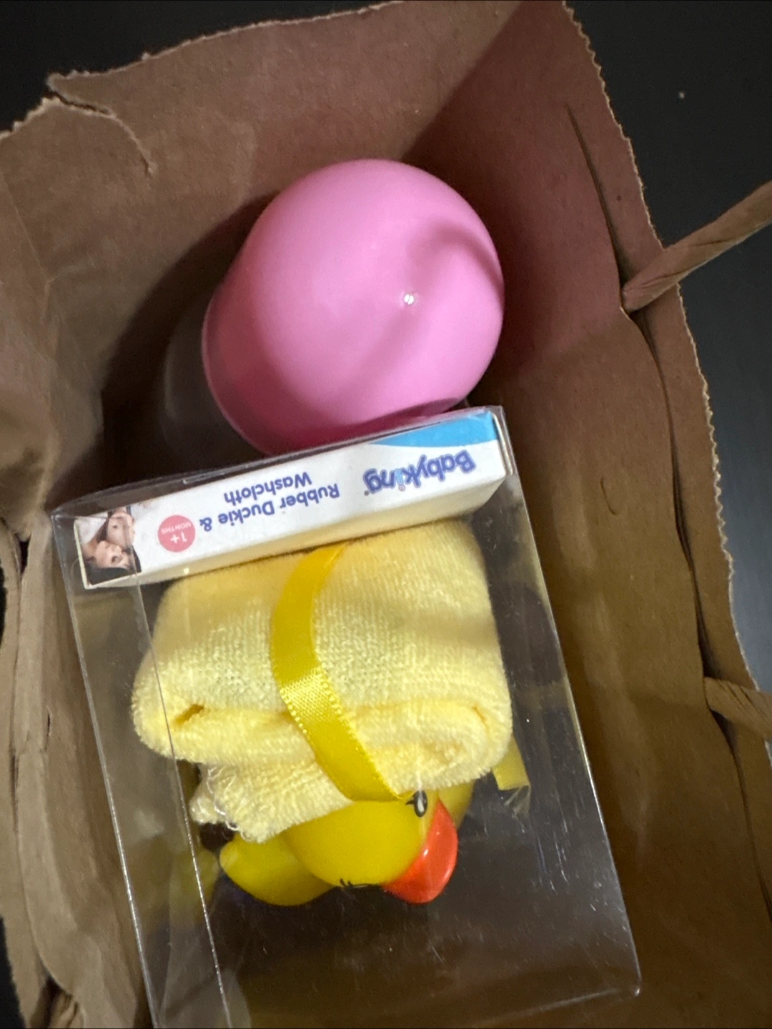 Selling a baby bundle from Tootsie! Includes: - A soft and hard teether suitable for 3m+ - A silicone pacifier with cover with Glow in the dark handle. - A silicone finger toothbrush with storage case, suitable for 4m+ -Rubber Duckie and wash cloth . -Feeding Bottle. Alt items are BPA free!