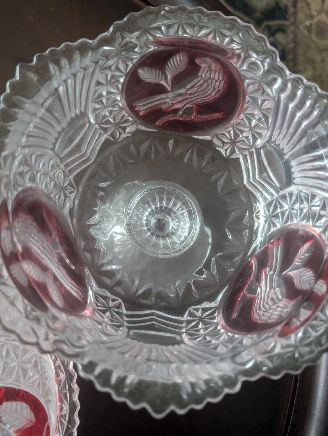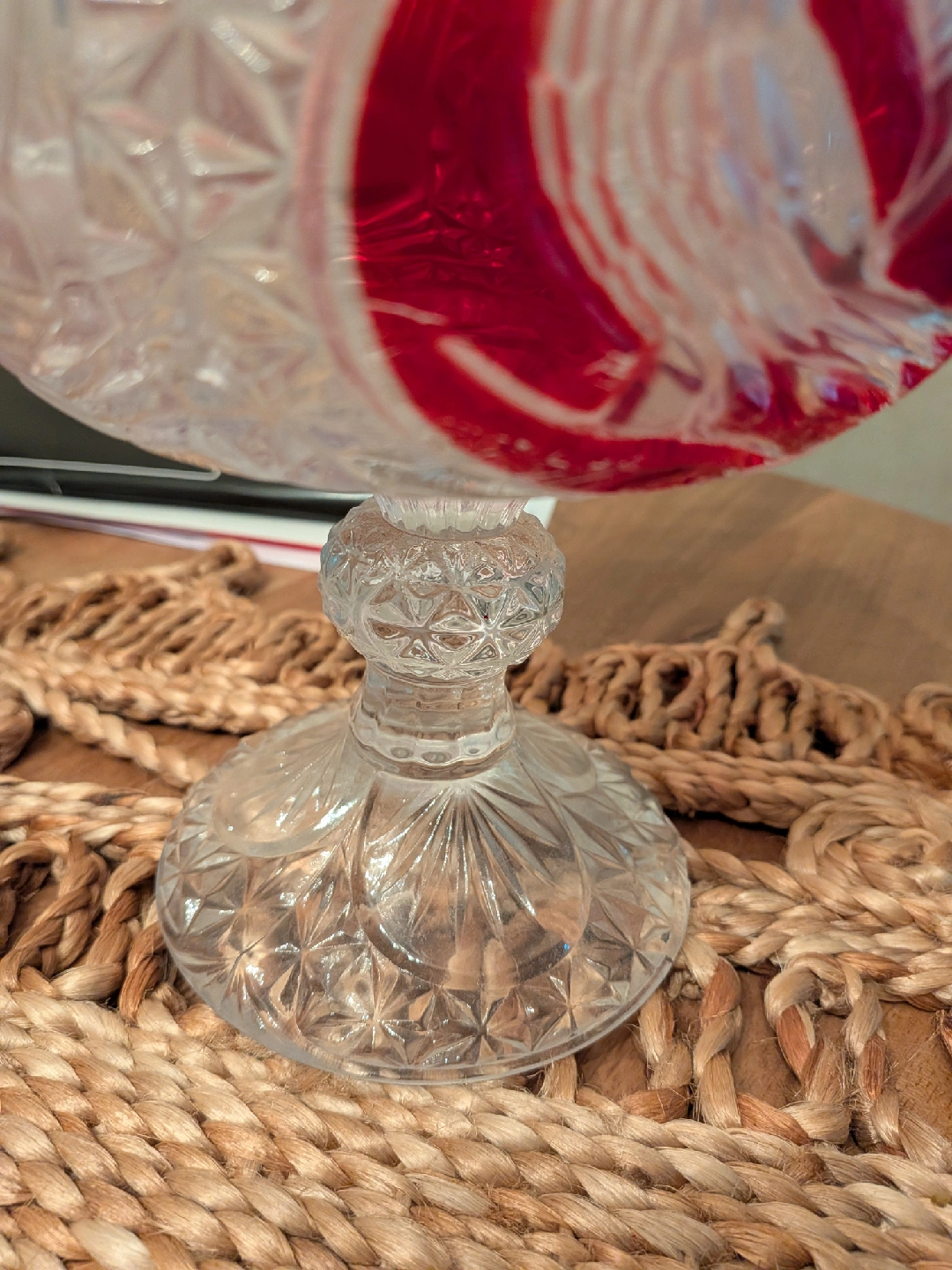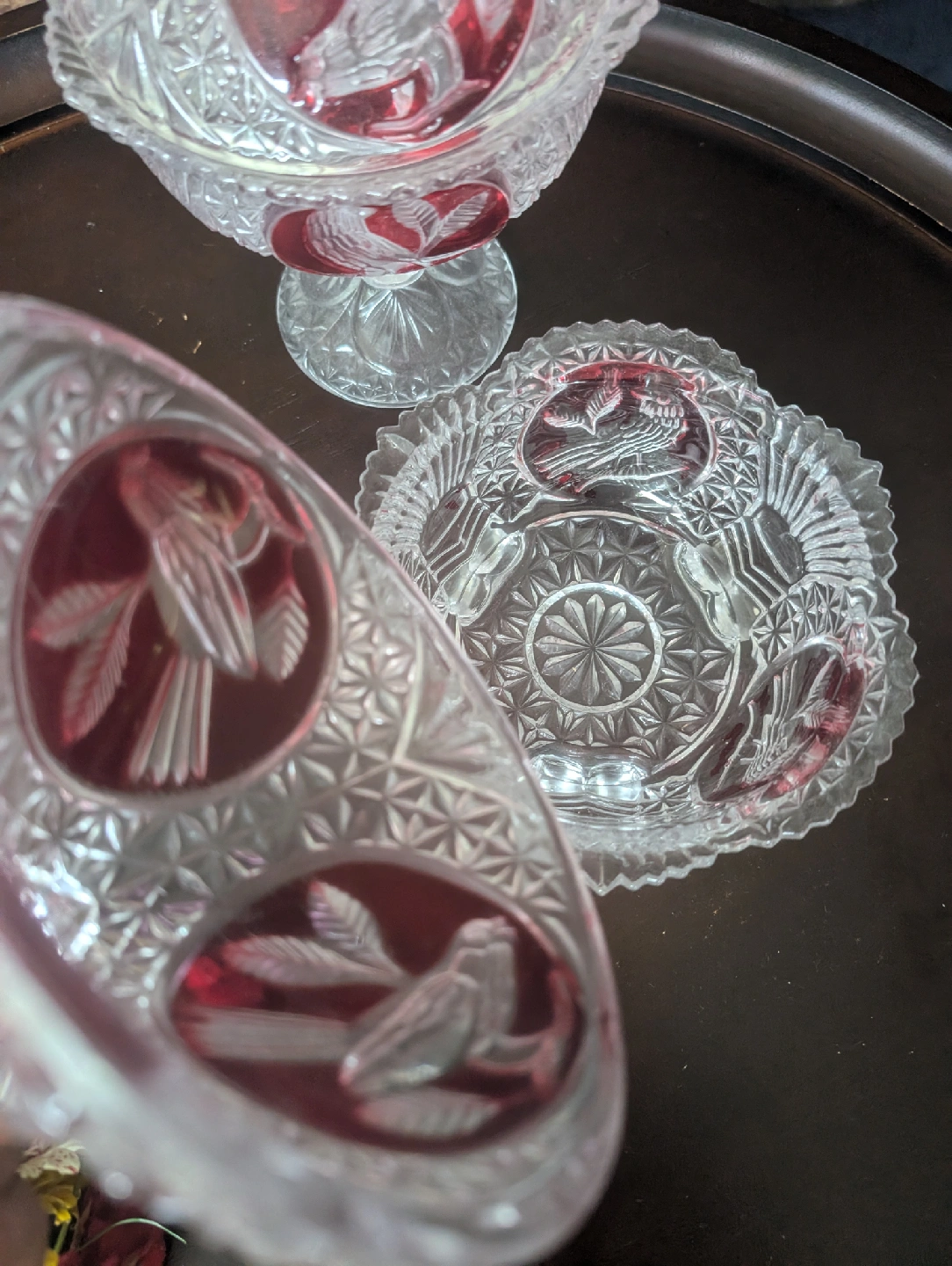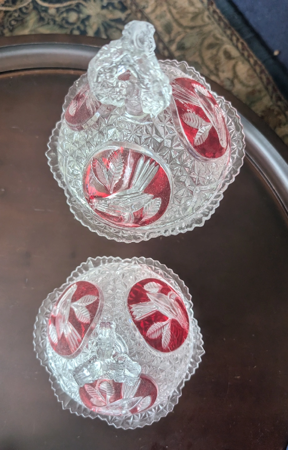 Beautiful glass candy dish with a lid, perfect for adding a touch of elegance to your home. The intricate bird design and red accents make it a standout piece. It's in great condition and ready to be enjoyed! Good condition, no issues Cash only, no etransfers Etobicoke meetup. Rathburn and Renforth First come, first serve, no holds