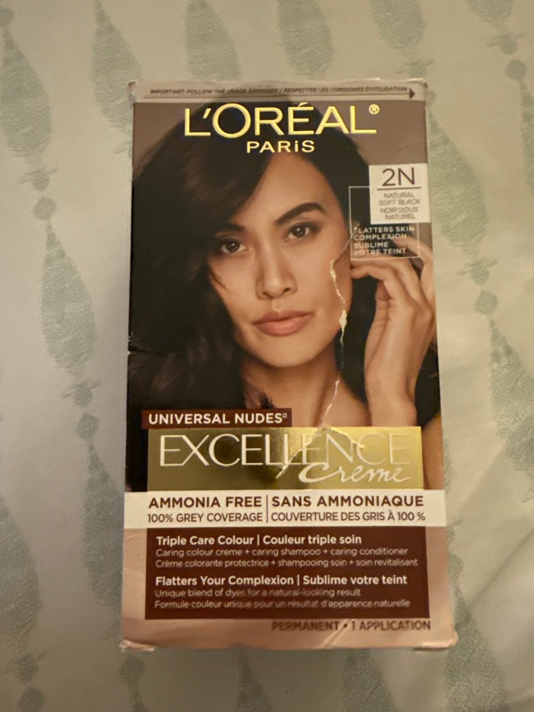 Selling L'Oreal Haur Color Excellence Creme in 2N Natural Soft Black. This is an ammonia-free hair color creme that provides 100% grey coverage. It's a triple care color, including caring color creme, caring shampoo, and caring conditioner to flatter your complexion