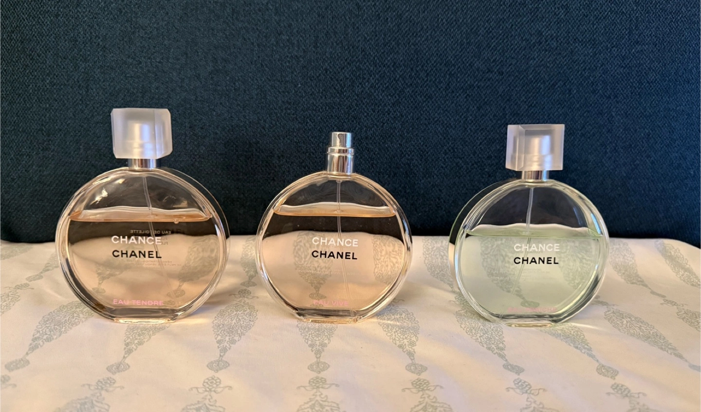 Selling a set of Chanel Chance Eau de Toilette. The set includes Eau Tendre, Eau Vive, and Eau Fraiche. They range from approximately 75% to 90% full. Eau Fraiche ~75% full - $70 Eau Vive ~ 90% full - $85 Eau Tendre ~ ~85% full - $80 Buy all 3 bottles - $185