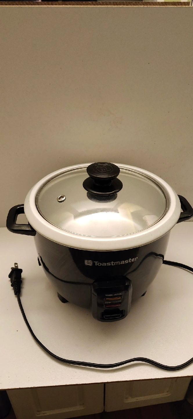 USED EXCELLENT WORKING CONDITION. Selling a Toastmaster rice cooker in black 9"W-7"H. It comes with a glass lid. Perfect for cooking rice quickly and easily! price firm only cash only pickup no delivery. Meet up on 8O1 O'Connor drive East York outside TD Canada Trust door. price is firm not negotiable.