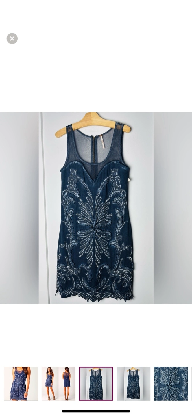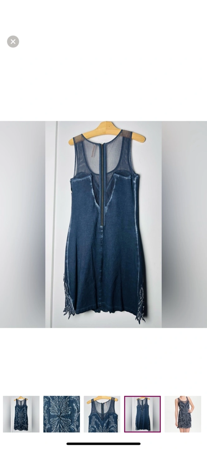 - Dark blue/gray color - tie dye effect -Scalloped hem - Back zipper - Fitted -Raw edge -Like New No flaws -mesh neckline