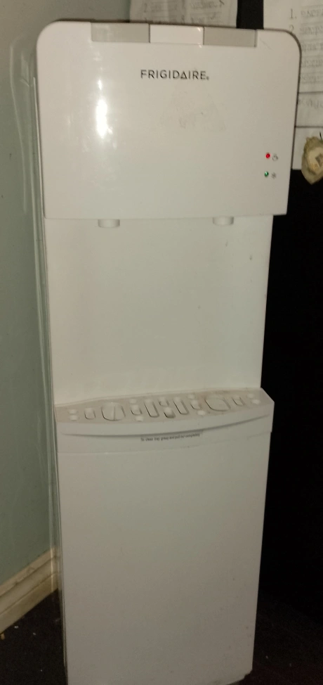 Selling a Frigidaire water dispenser. It's white and would be great for an office or home setting. It has both hot and cold water options, perfect for any time of year