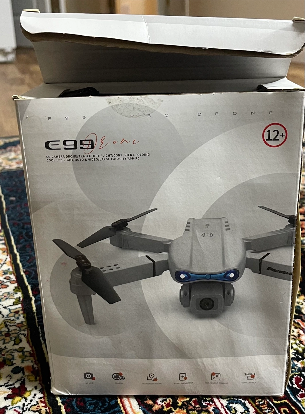 Selling an E99 Drone! It comes with the controller, instructions, and a carrying case. It is suitable for ages 12 and up. Perfect for beginners!