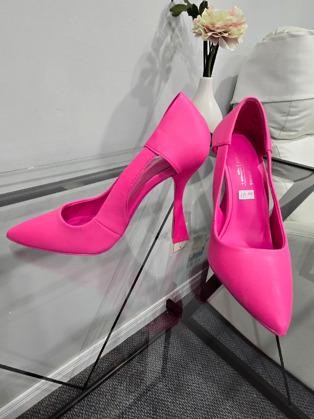Selling a pair of black thigh-high boots. They have a high heel and a decorative ankle strap. Perfect for a night out! Also a variety of shoes all size 5/5.5. Selling each for $15