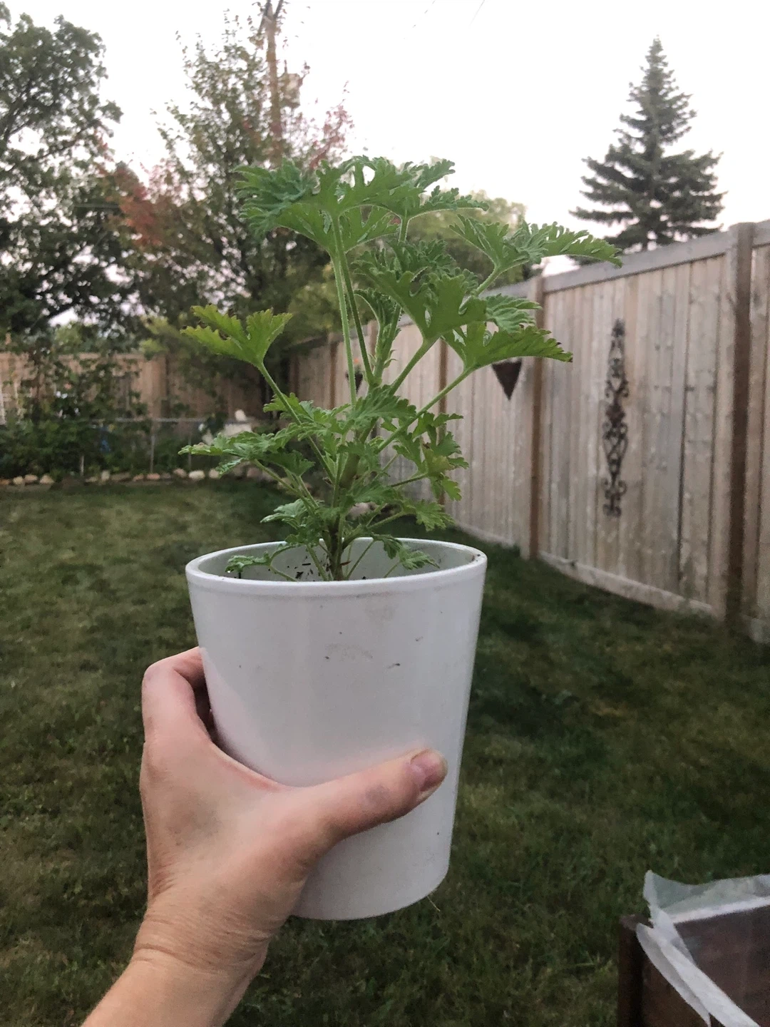 Lemon Scented Geranium/ citronella plant in White Pot. $15 Cash or e-transfer Coliseum Area / Elmwood Park Shipping extra