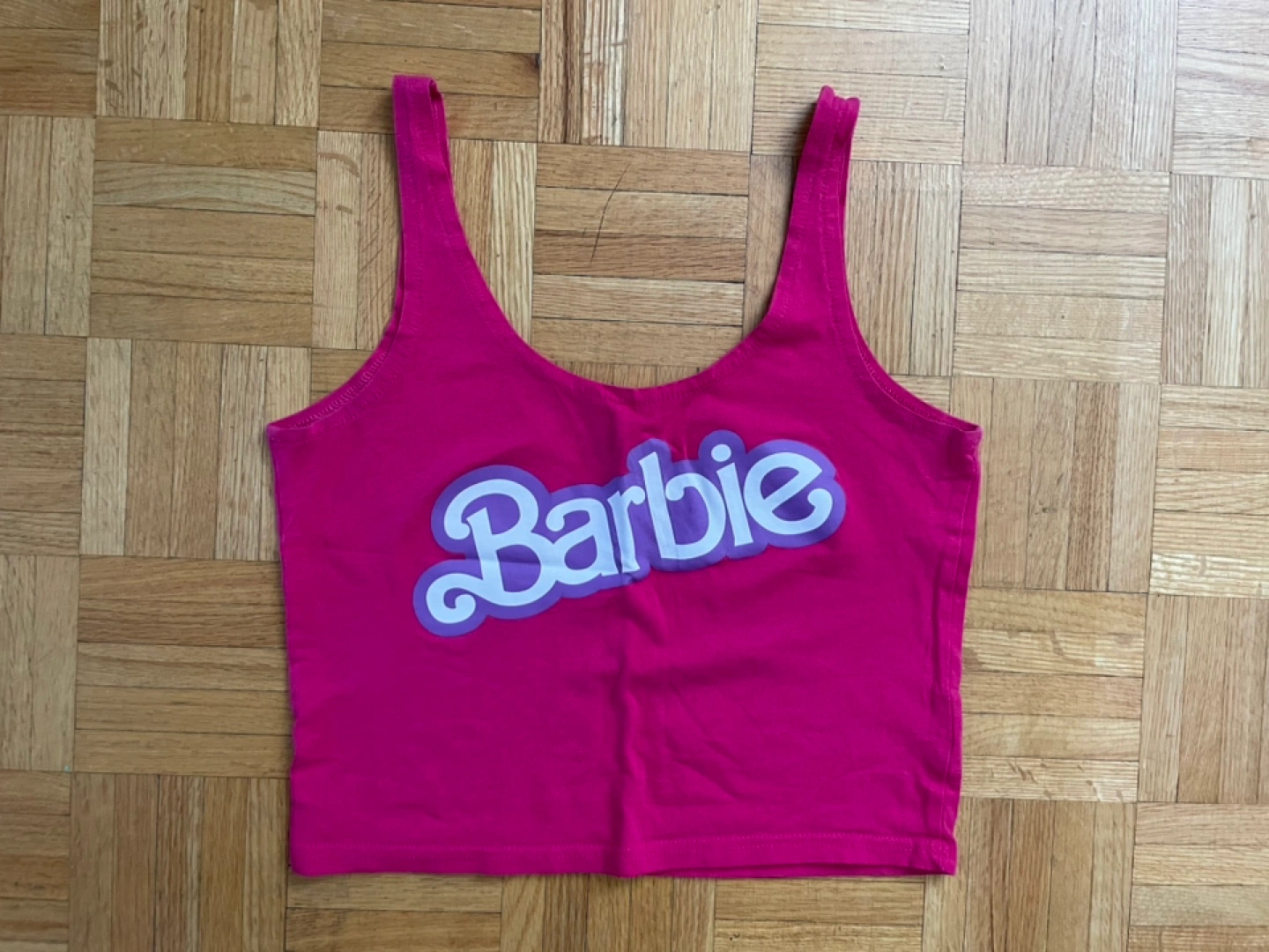 Selling a cute pink Barbie tank top! It's in great condition and features the classic Barbie logo. Perfect for a fun, casual look!