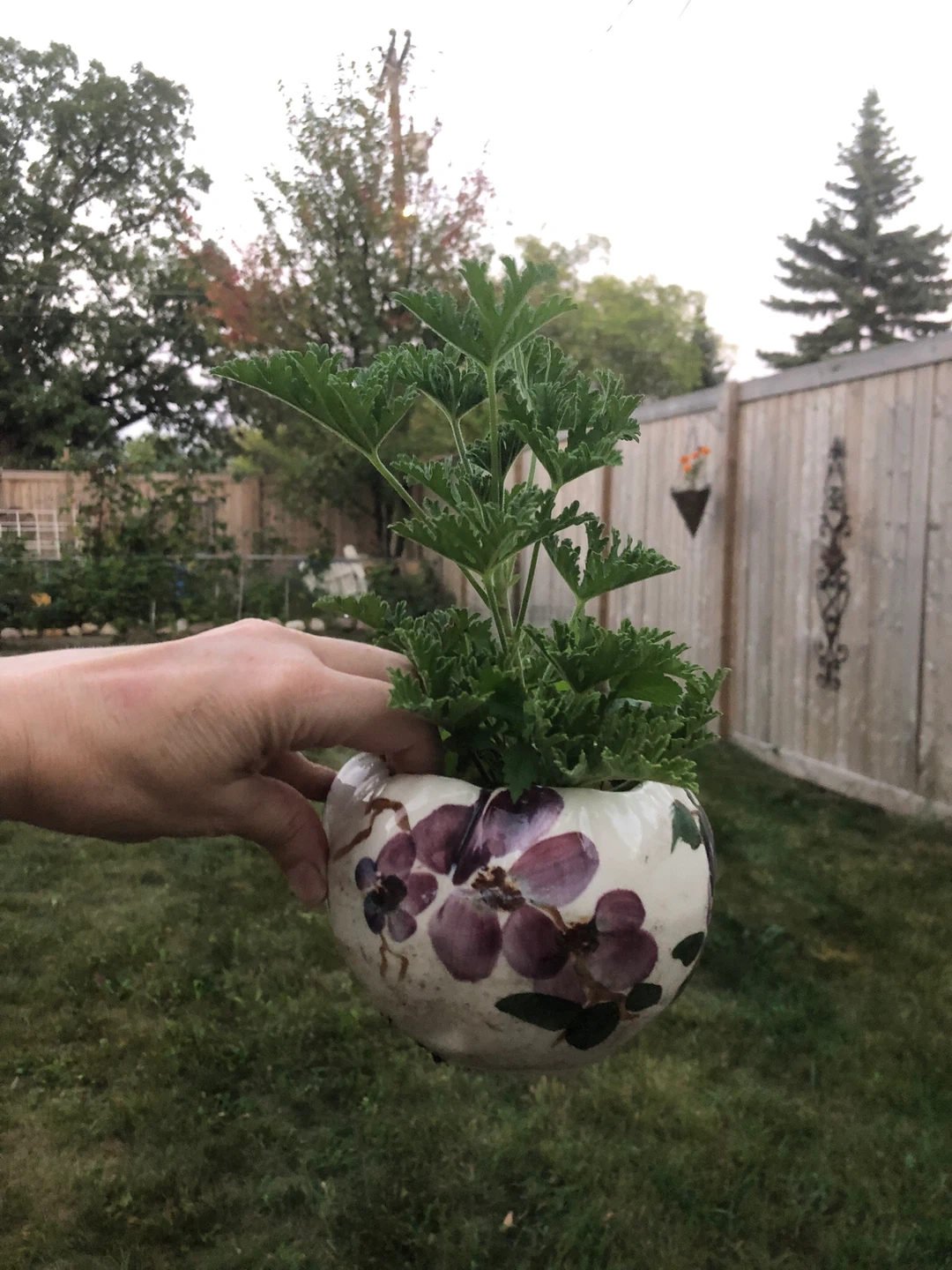 Lemon Scented Geranium/ citronella plant in Cute Pot. $15 Cash or e-transfer Coliseum Area