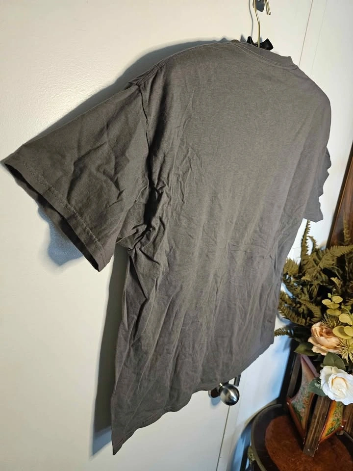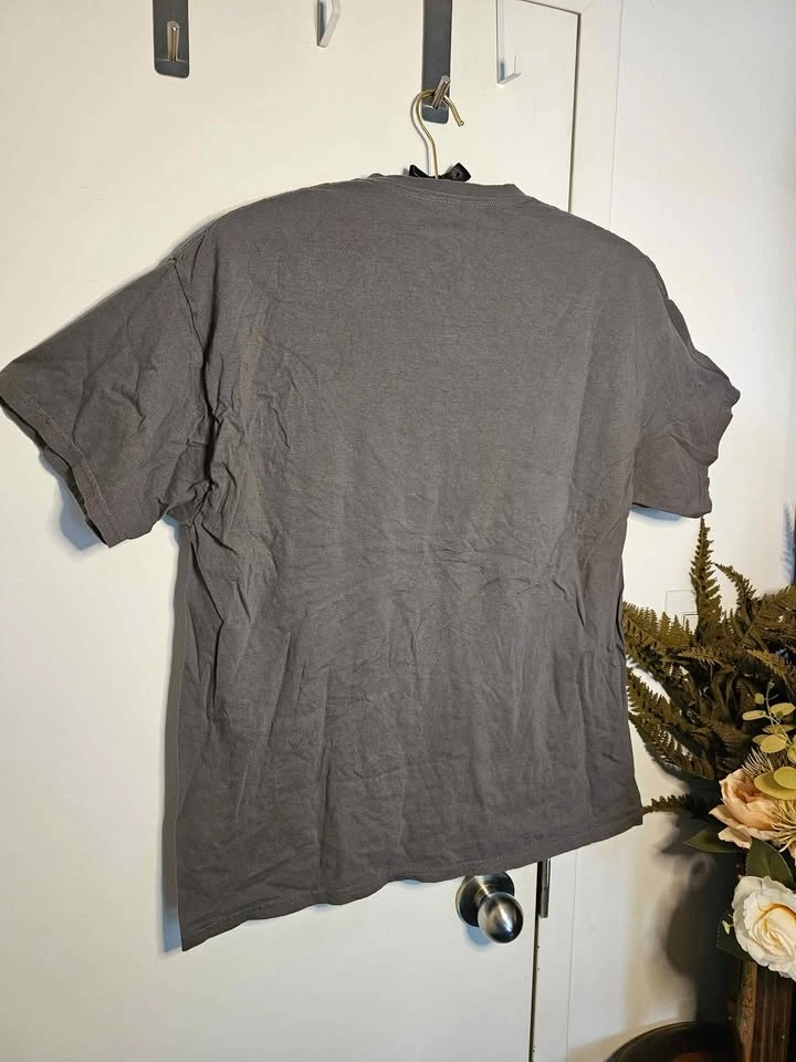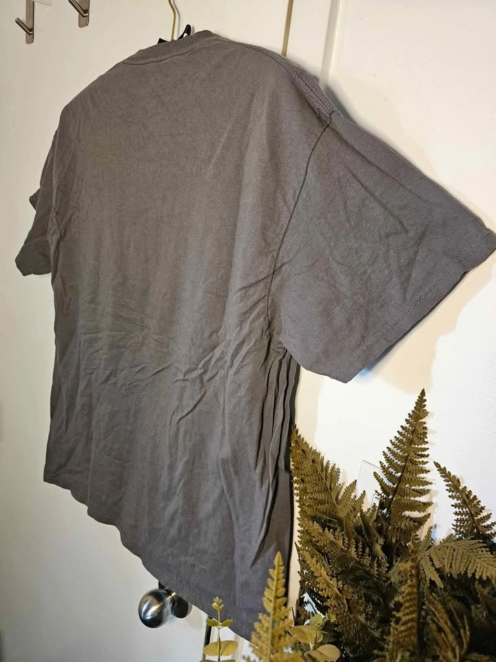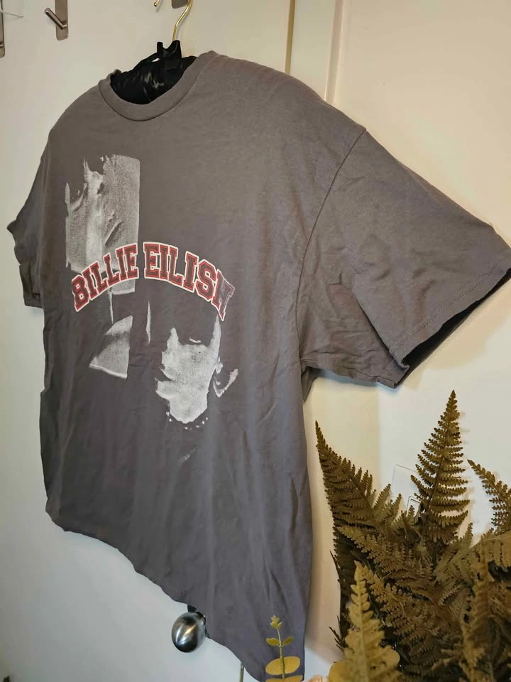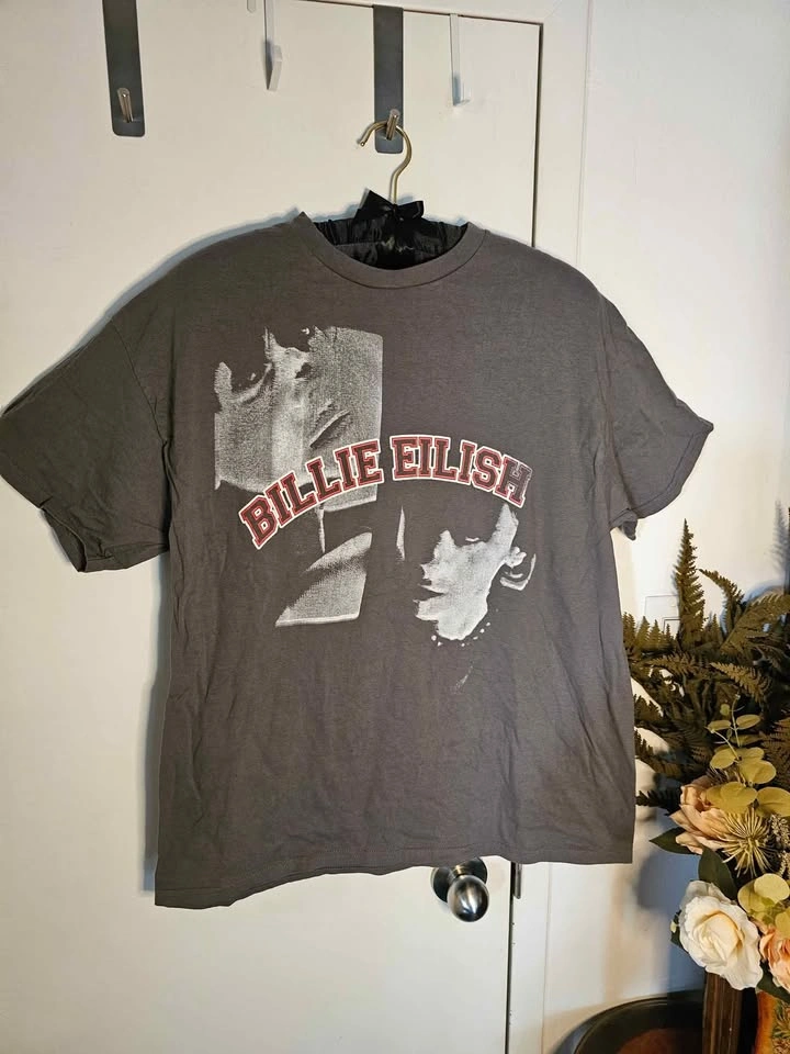 Official Billie Eilish light gray graphic t-shirt with varsity-style lettering, from 2024. Design is printed in a distressed/ pre-faded style in white and red. Shirt is a size XXL, perfect for those who wear an XXL anyways or for an oversized look on smaller folks that Billie would approve of. Shirt is in very good used condition with light signs of washing/ wear. No damage that I could find. Pit to pit measures about 23" and shoulder to bottom hem measures about 27.5".