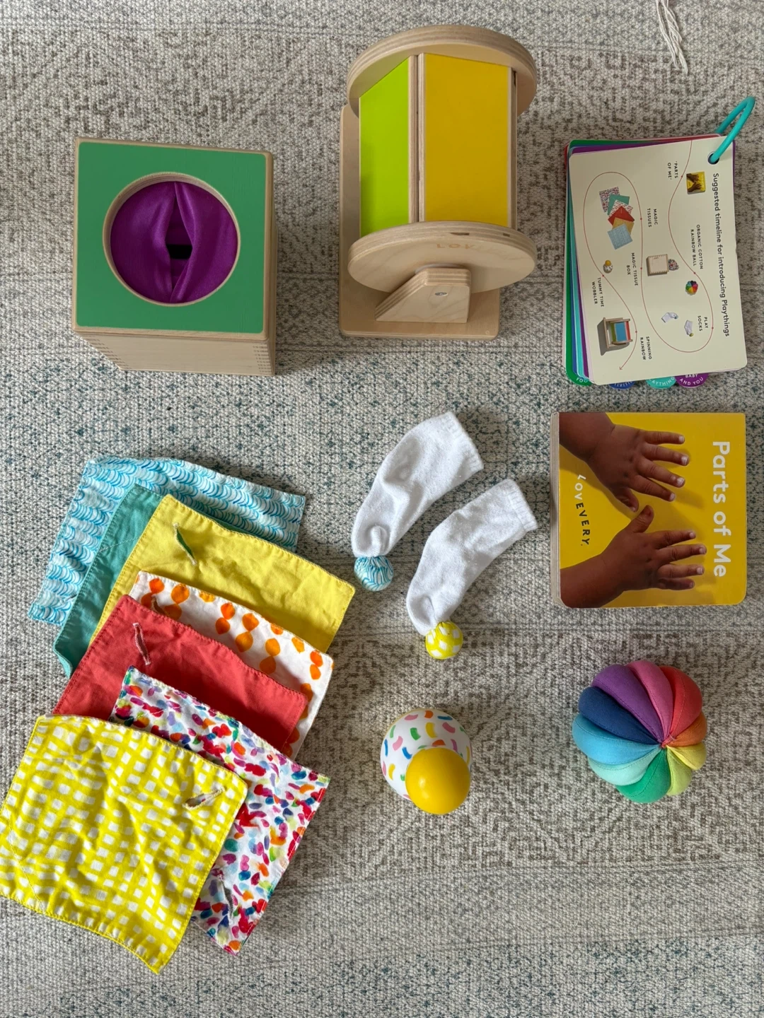 Lovevery play kits, great quality toys my baby loved them. Ready to pass them on. 5-6 mo: all items there in great condition $55 7-8 mo: missing my first sign book, other items all in great condition $45 9-10 mo: all items there, in great condition $55 11-12 mo: all items there, animal book is ripped, other items in great condition $50 Entire lot for $200
