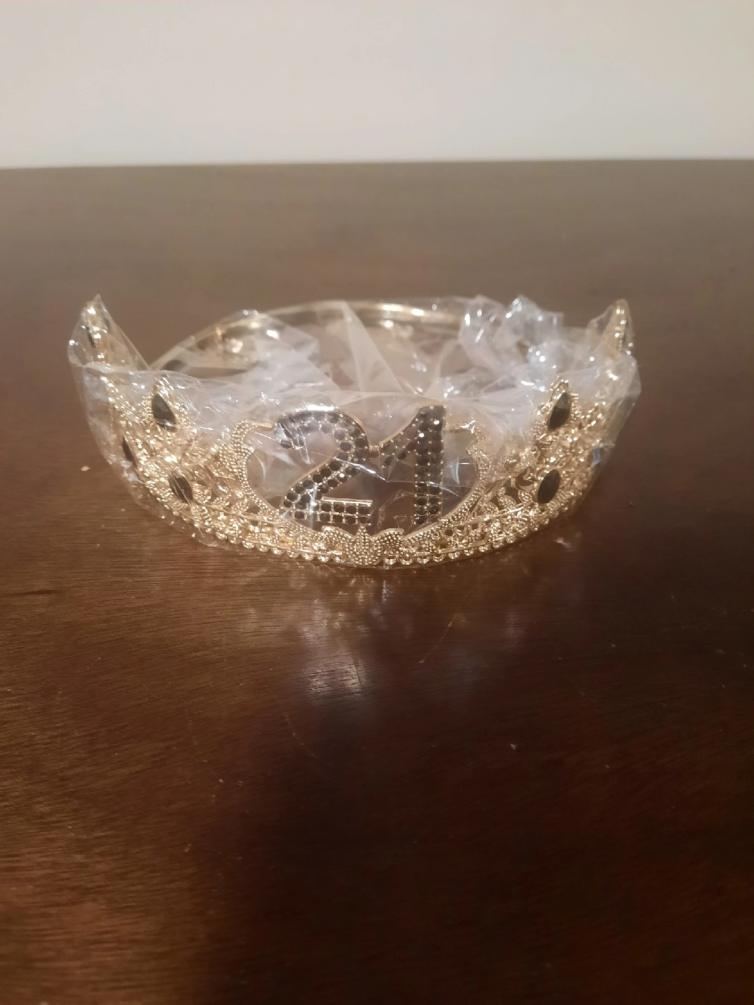 Selling a brand new crown for a 21st birthday celebration! It's gold with black accents and still in its original packaging