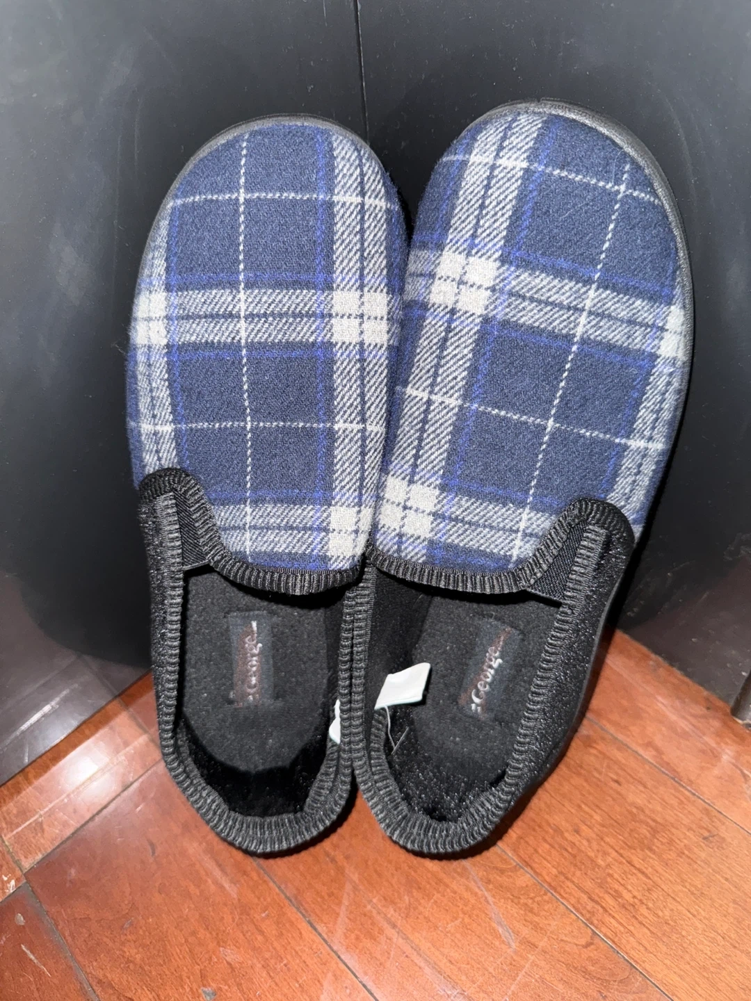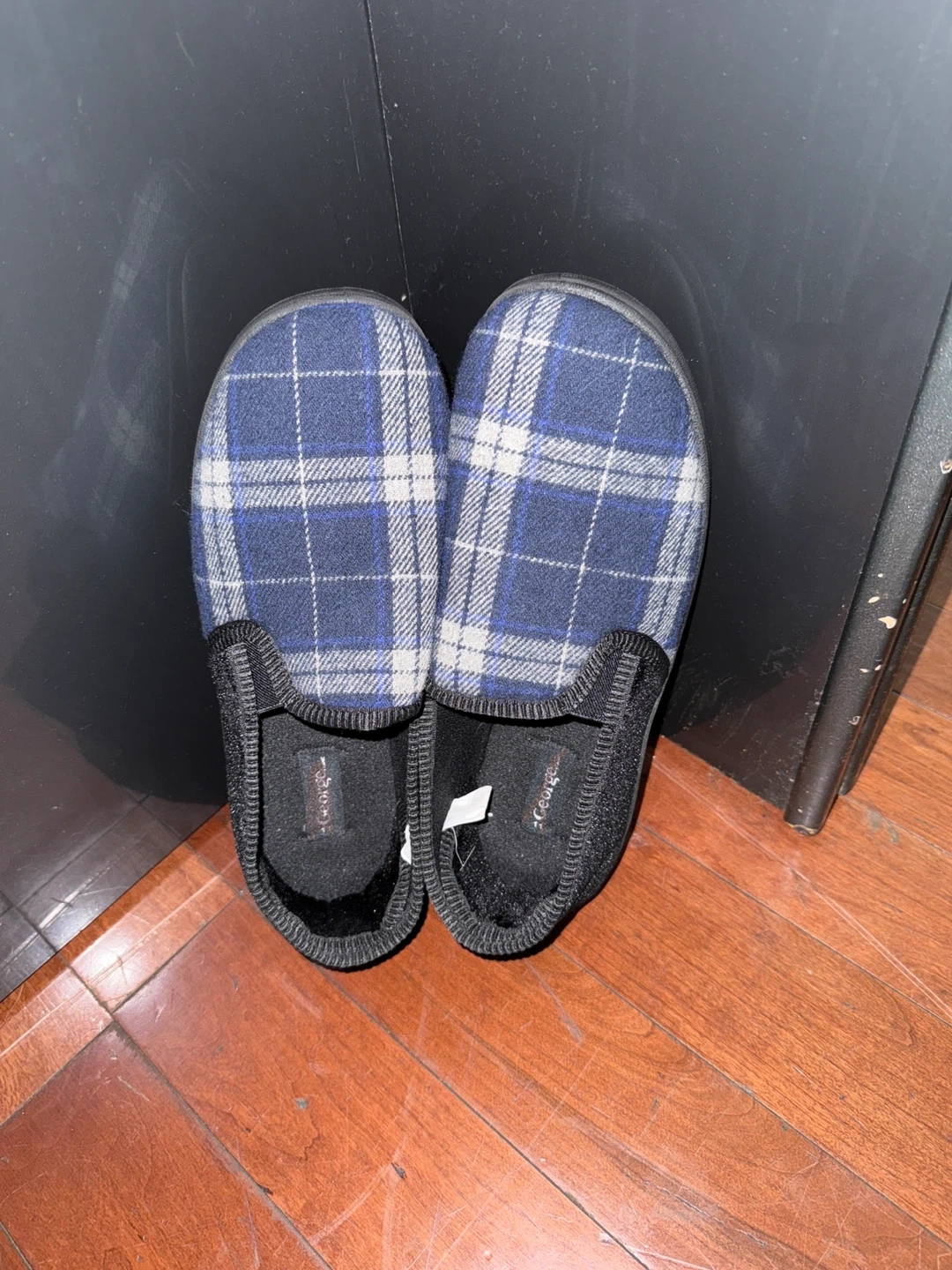 Cozy blue plaid slippers from George! These slippers are perfect for keeping your feet warm on chilly days. They're in great condition and ready for a new home