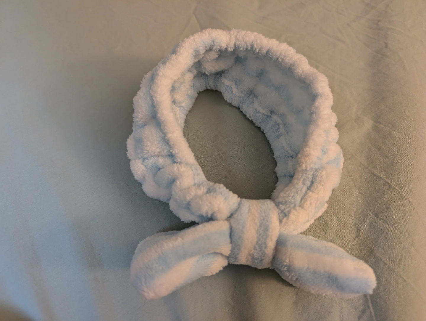 Here's a super cute and comfy spa headband! It's perfect for keeping your hair out of your face while you're doing your skincare routine or just relaxing at home. The soft, plush material feels great against your skin
