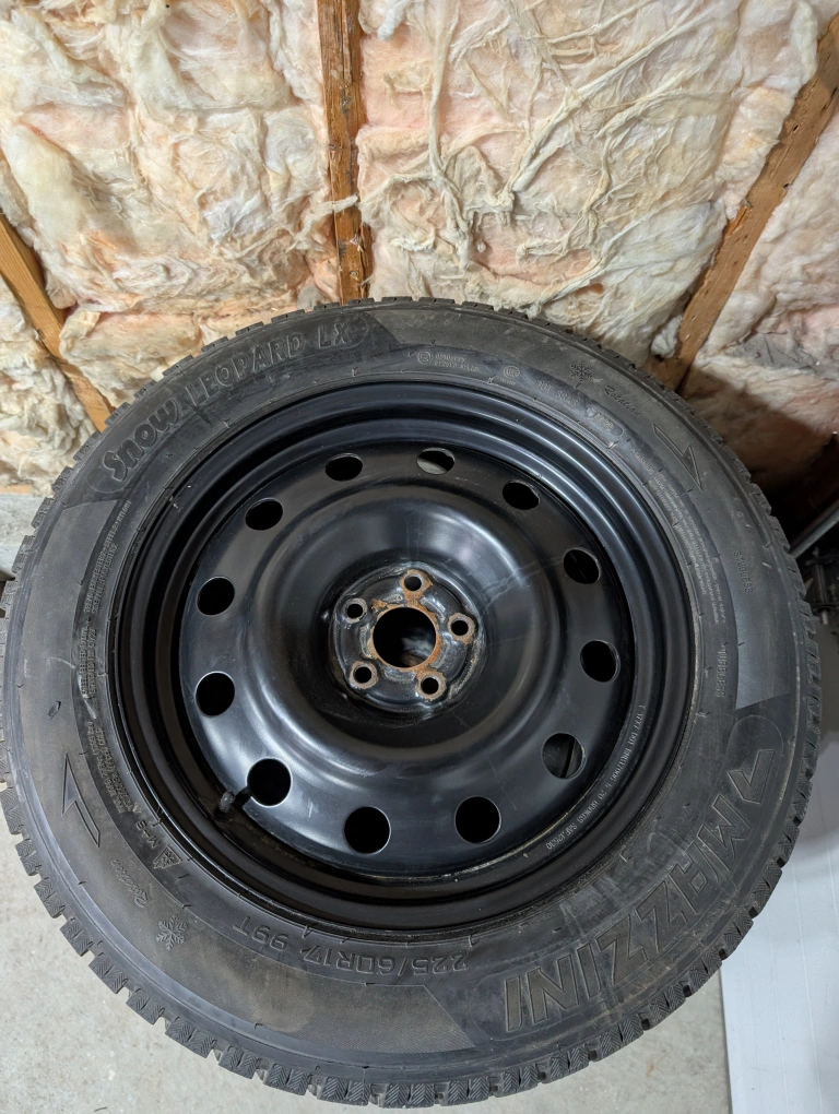 (4)-225/60R17 Winter Tires On Steel Rims Off 2013 Subaru Outback Mazzini Snow Leopard Winter Tires 11/32nds Or 100% Off Tread Left Will fit many years of Subaru Outback and possibly other Subaru models that are 5x100 Bolt Pattern 5x100 Center Bore 56.1 Rim 17x7 $650.00 Obo Located Near Concordia and Lagimodiere (#W34)