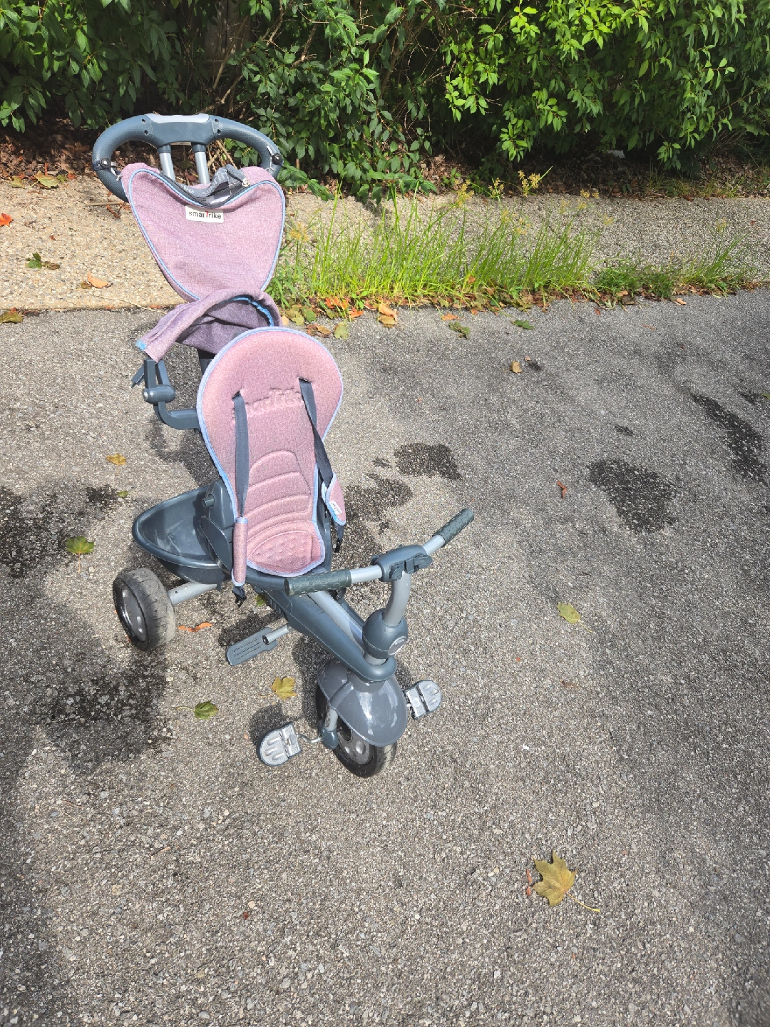 Selling a Smartrike tricycle in grey and purple. It's in good condition and ready for a new little rider!